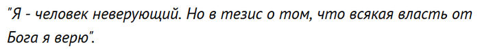 забавно, но чел явно не заметил, как крамольную мысль сформулировал. Т.е. "я не верю, что Бог есть, но власть он назначил.... А Бога нет.... вот" Вывод - власть ниоткуда!