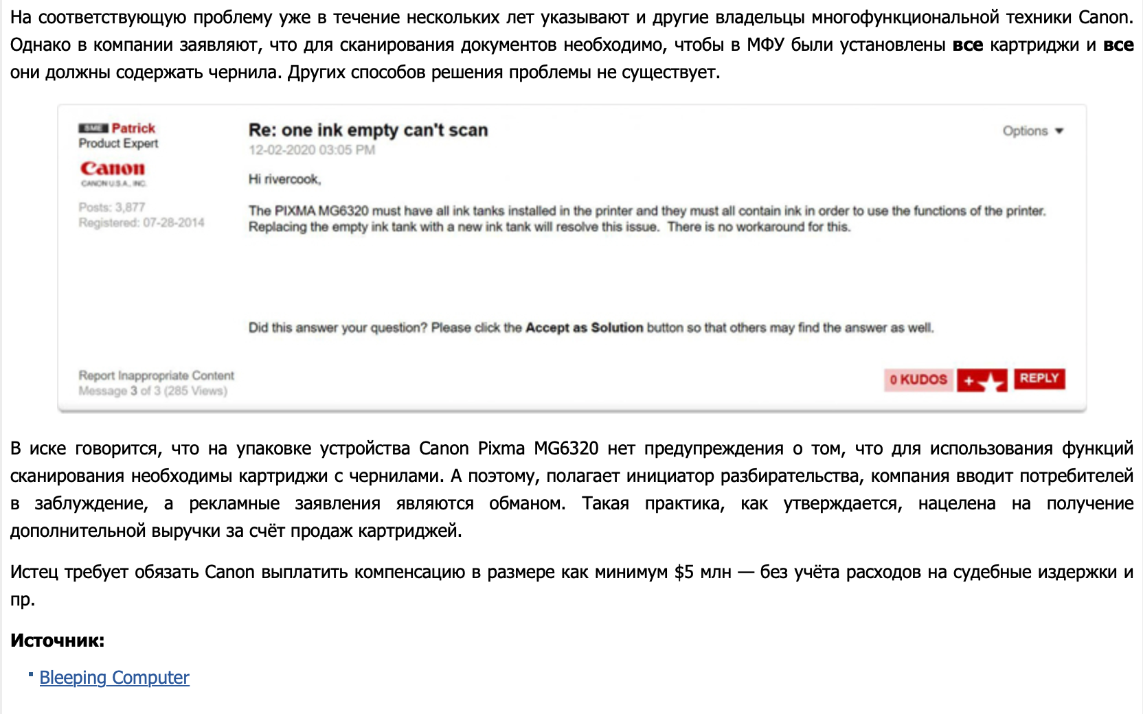 У них, наверное, с десяток патентов на создание проблем с неоригинальными расходниками.