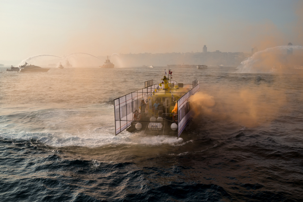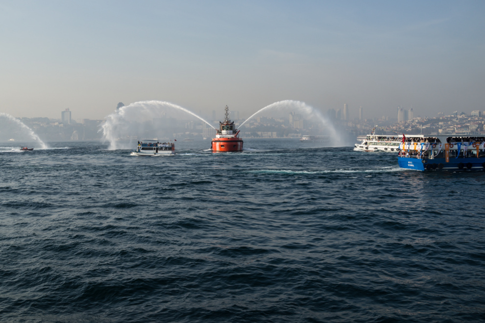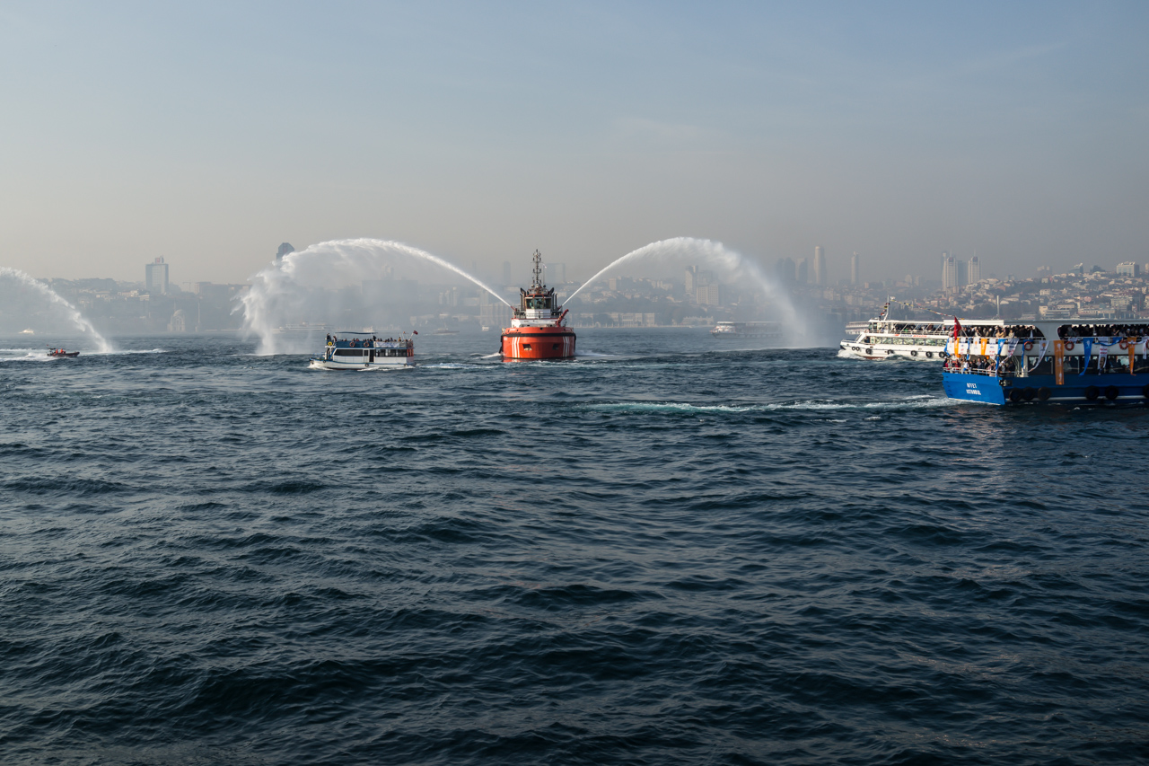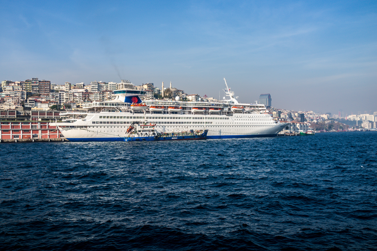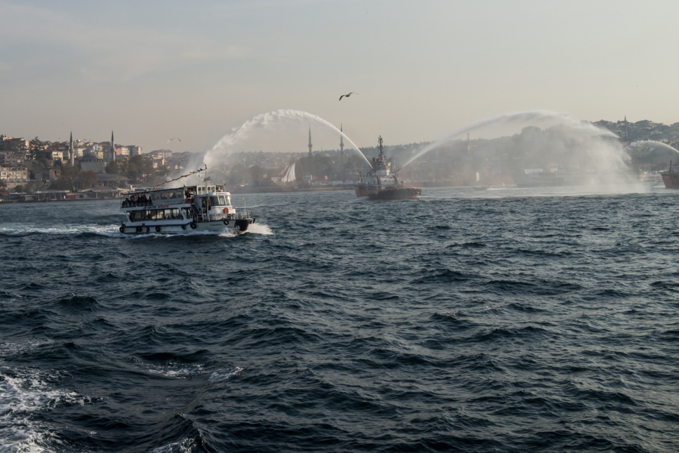 А теперь немного о том, как это было. До места открытия туннеля мы добирались из европейской части Стамбула на пароме, которых там ходит штук пять. С парома можно было посмотреть и поснимать Стамбул.