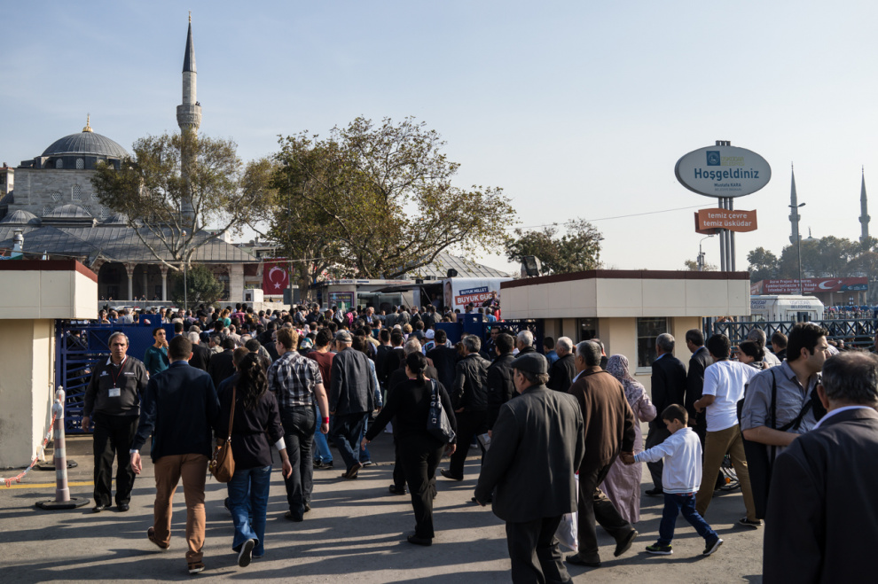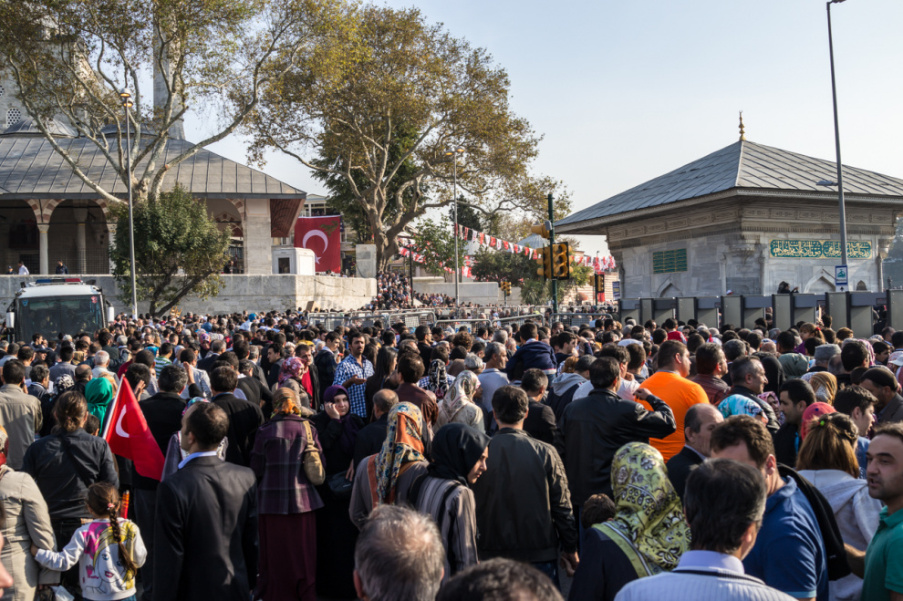 Доползли до рамок прохода к месту, где должно было состояться открытие туннеля, и увидели там примерно миллион человек, которые явились сюда за тем же, что и мы. (Население Стамбула - порядка 13 миллионов человек.)