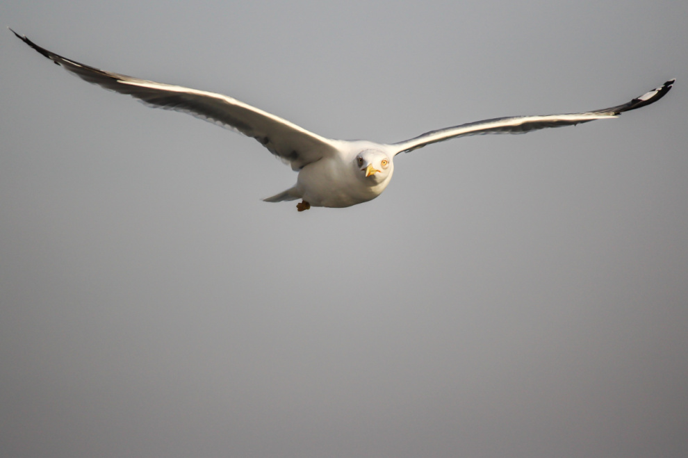 Кто-то затеял кормить чаек с палубы, и птички чуть не разорвали паром в клочья. Посмотрите, какой злобный взгляд.
