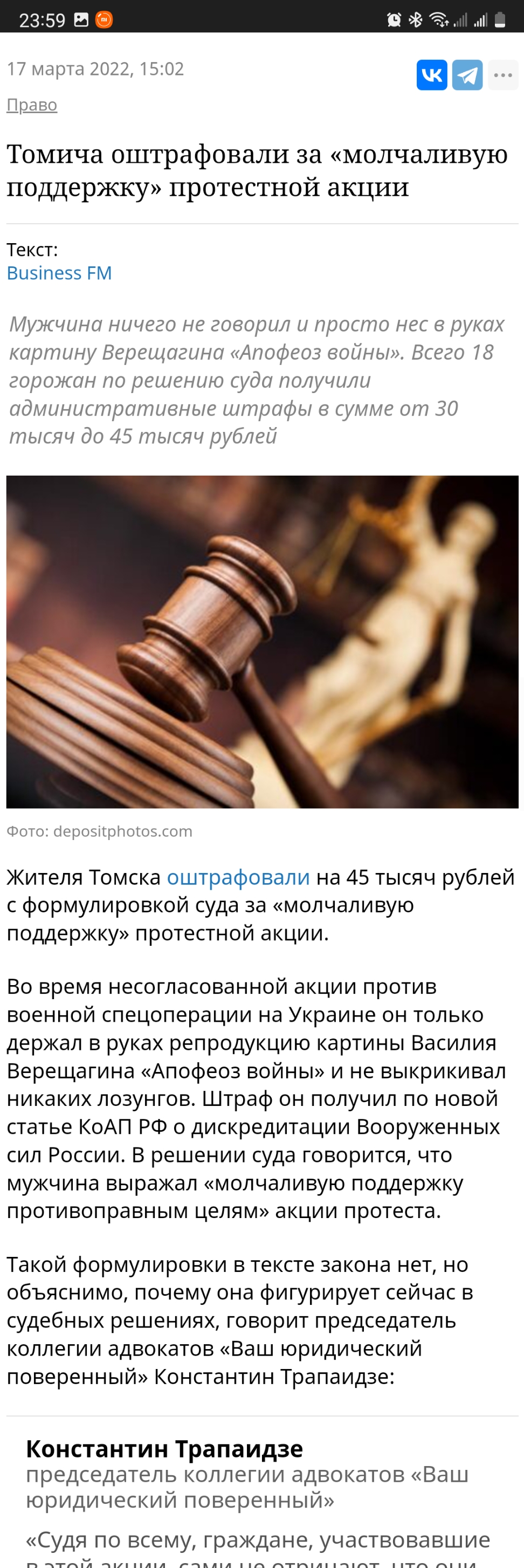 "Жителя Томска оштрафовали на 45 тысяч рублей с формулировкой суда за «молчаливую поддержку» протестной акции.