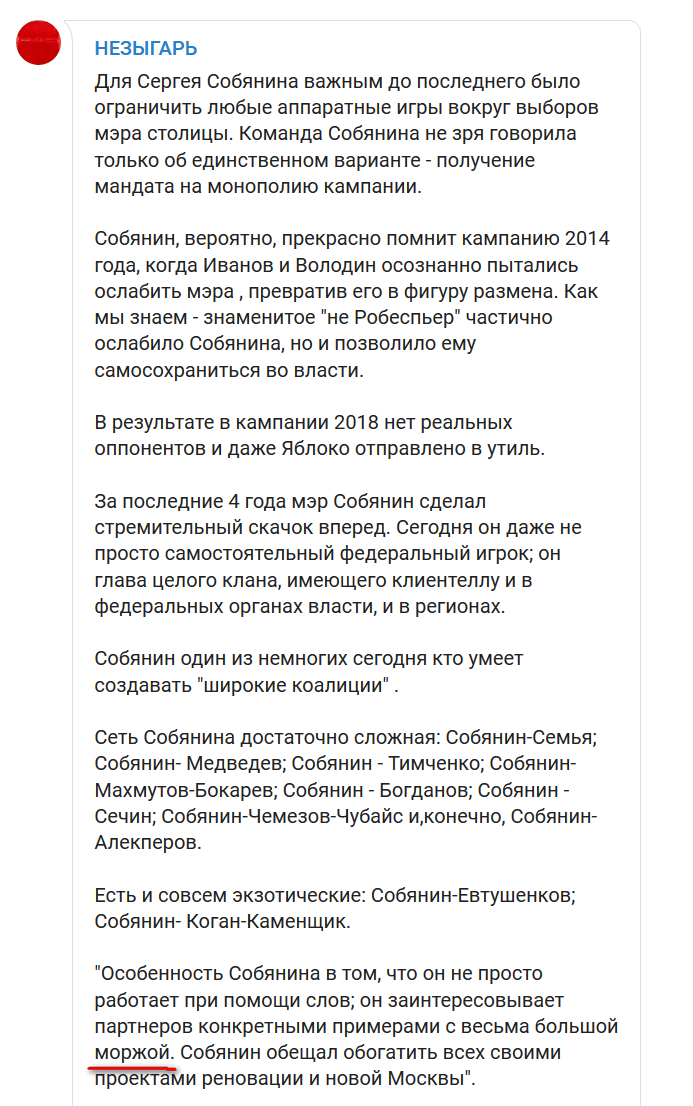 Вот один из таких пиар-каналов - рассказывает о том, как Собянин очаровывает всех своим большим моржом. А что на хреновации замечательно обогатится куча путинских парикмахеров и массажистов - так в этом вроде никто не сомневается.