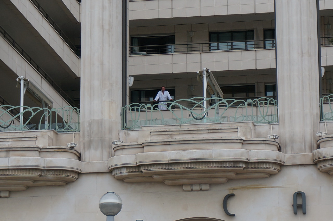 Почему я думаю, что это наш, российский? Потому что ровно полчаса назад в таком же халате стоял на балконе номера в Negresco и наслаждался свежим воздухом. Просто мимо никакой блогер не проплывал.