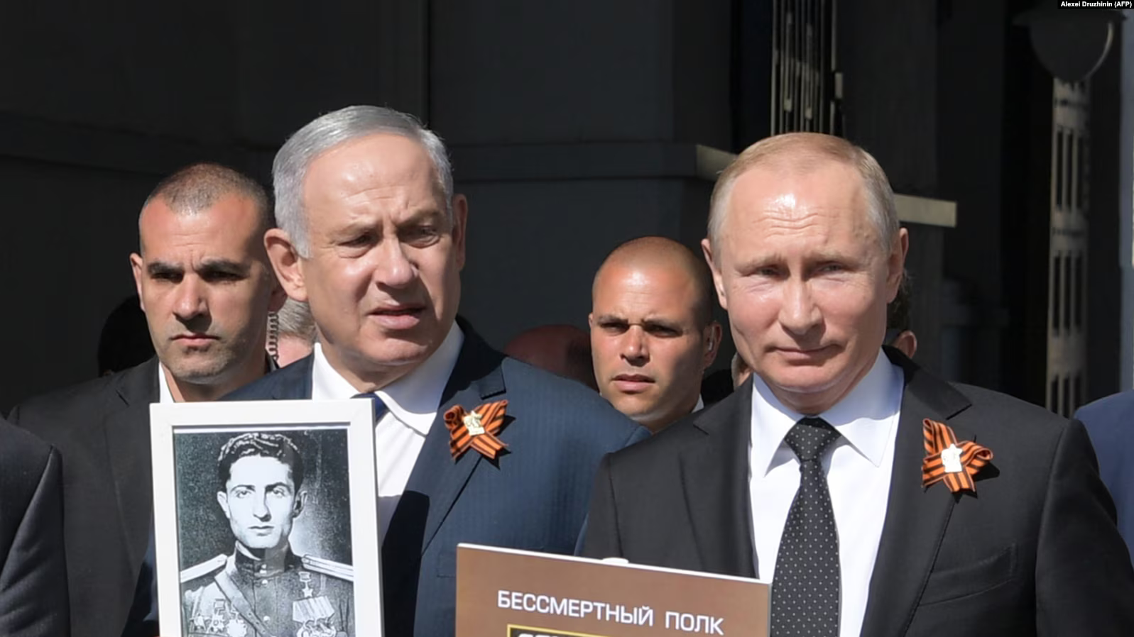 В Хайфе на 9 мая этого года открыто проходил митинг с флагами России, георгиевскими лентами, портретами Сталина.