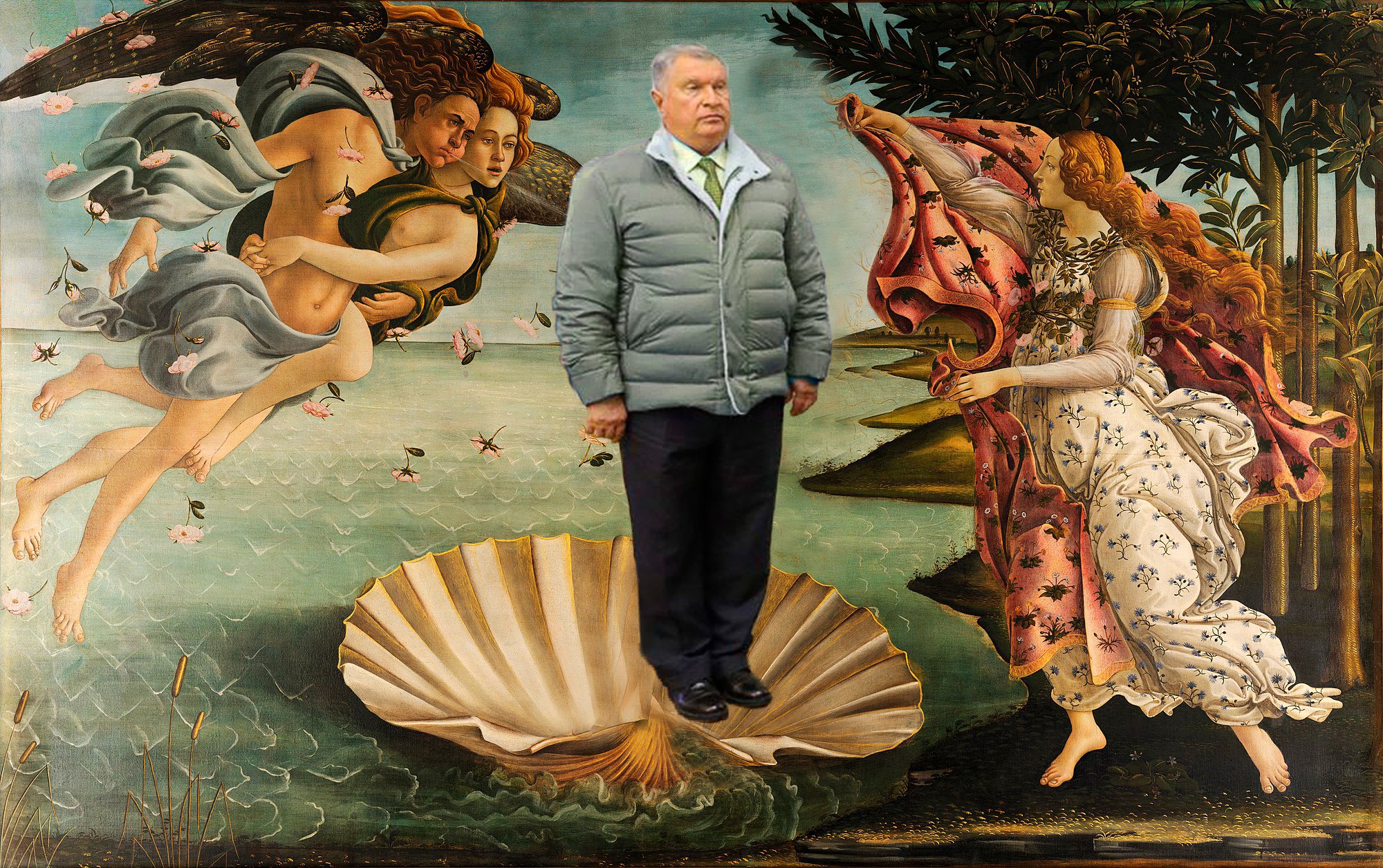 Сечин засветился на встрече Путина с попами в моднявой итальянской курточке за 244 тысячи рублей. Которая идет ему, как Соеву пенсне. Получился такой забавный-забавный старичок-пуховичок.