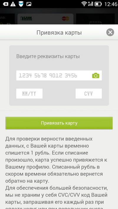 Внимание: даже у привязанных к счету карт при переводах требуется вводить CVV-код - для безопасности.