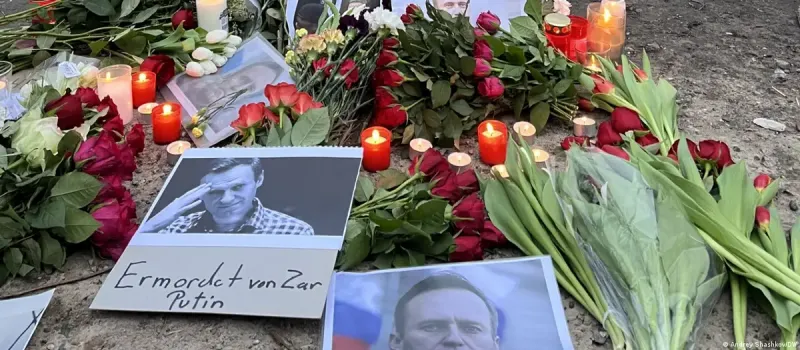 Цветы и свечи в центре Берлина в день смерти Алексея Навального 16 февраля 2024 года