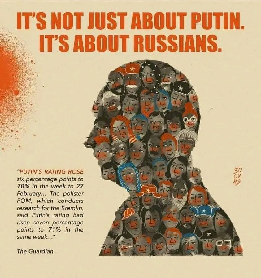 [/QUOTE]Меня убило расследование HRW где описана девушка которую поймал русский солдат, многократно изнасиловал и порезал ей тело, это ж реальный маньяк, чистая психиатрияНу а тут зондеркоманды конечно, надеюсь всех найдут, это за гранью добра и зла, абсолютный геноцид[/QUOTE]Проблема ( для росиян ) заключается в том, что как раз это не их зондеркоманды ( в понимании ВМВ ) сделали весь тот ужас, а регулярная армия мордора. Это и есть самый настоящий ужас для росиян, которые пока не осознали, чем это грозит им самим. Их стране, их родственникам и всем всем всем, проживающим там. Если бы это были зондеркоманды (росгвардия, или там кадыровцы, или какие то еще твари) то можно было бы списывать на эффект исполнителя, типа, разыщем и сами накажем, а армия - нет, мы с гражанскими не воюем. А это как раз армия, номера частей которые там стояли уже известны, как и поименный состав частей. И это уже намертво приклеилось, связку государство-армия-народ-коллективная ответственность уже не разорвешь. Те садисты и есть народ росии, получается. И попробуй кому-то что-то доказать обратное. Но есть еще одно - эти садисты приедут домой. Как вы думаете, что начнется, когда экономическая ситуация начнет ухудшаться ( что неизбежно в условия санкций )? Вот это будет интересное шоу, бандитские 90е будут веселой, беззубой комедией. В прямом смысле это будет войной без правил всех против всех, воюющими между собой бантустанами. Вот это будет справедливая цена за ту возгонку низменных чувств, которые культивировались на расии последние 20 лет. Ну а нам, нужно закрывать границы и никого, вообще никого, оттуда не пускать. Пусть сами у себя разбираются. Да, свой Моссад, надеюсь у нас появится теперь наконец официально ( Захерченко и Моторыло уничтожило слабое подобие будущей структуры ), и все те твари, кто это сделал, просто перестанут существовать. P.S. Сорри, может неправильно понял смысл вашего поста, но до сих пор в шоке от увиденного со вчерашнего вечера, хоть за месяц и привычно стало начинать утро с военных сводок