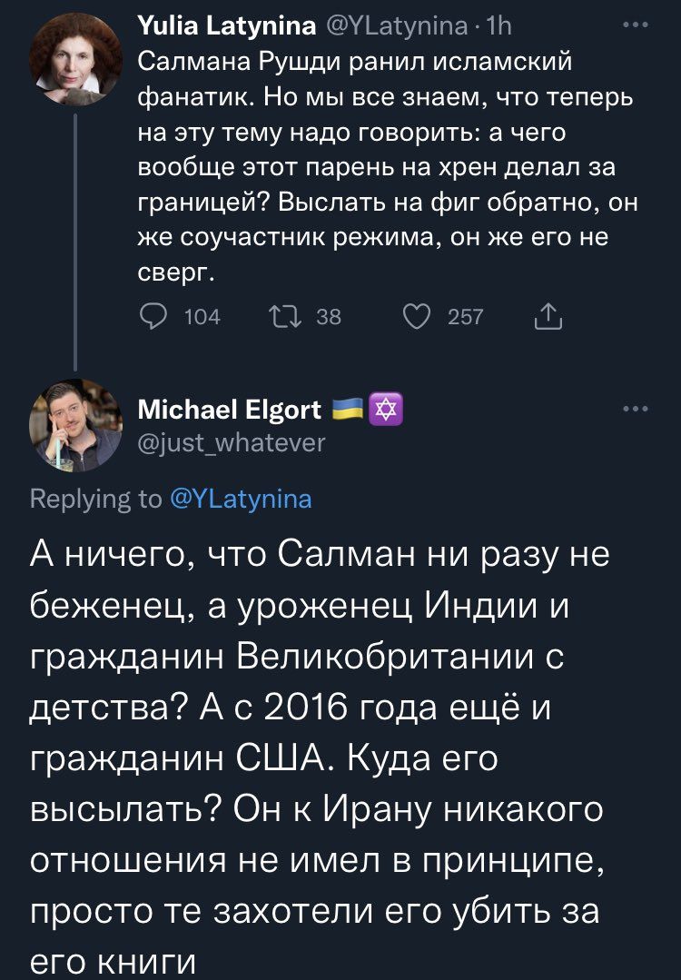 Российский либерал заканчивается там, где начинается украинский вопрос. Собственно весь комментарий лишнее подтверждение "ну подумаешь наша страна устроила войну и бомбит соседа. Мы хотим ездить на шоппинг в Милан и ниипёт. "