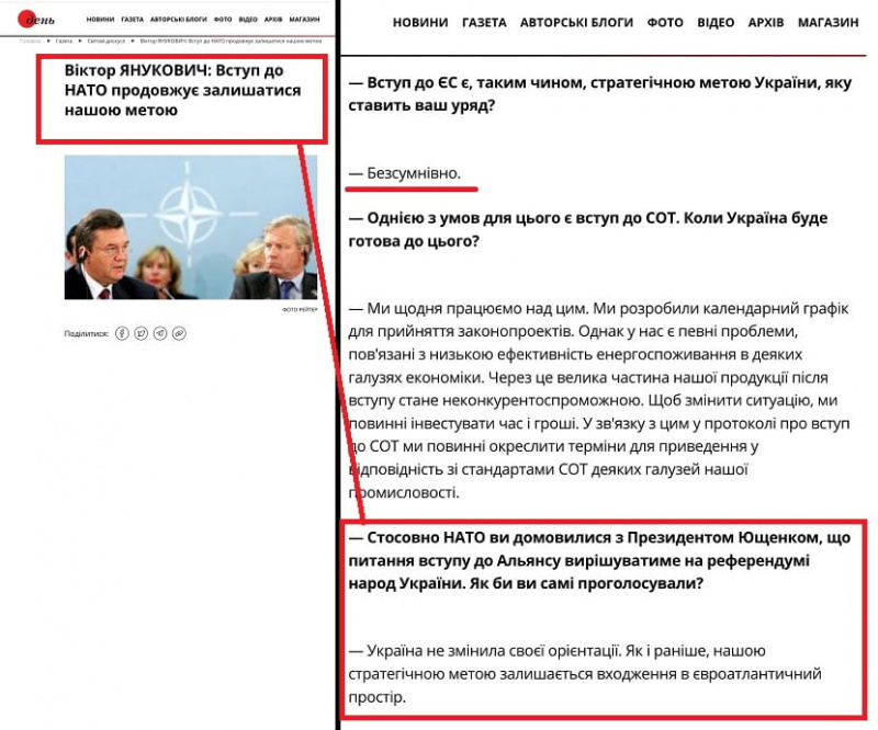 Но он, Янык, должен решительно заявить, что он УСЕГДА был против членства Украины в НАТО и УСЕГДА с этим решительно боролся, не покладая все того же золотого батона.