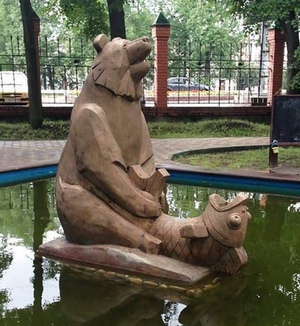 "Медведь наступает левой ногой на орла, крылья которого находятся за спиной скульптуры"...
