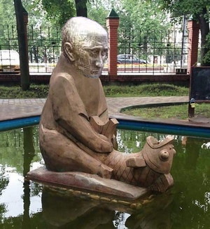Житель Астрахани Виктор Кропачев сделал кованую скульптуру, изображающую Владимира Путина с телом крылатого медведя и осётром в руках. Она называется «Ум, сила и душа».