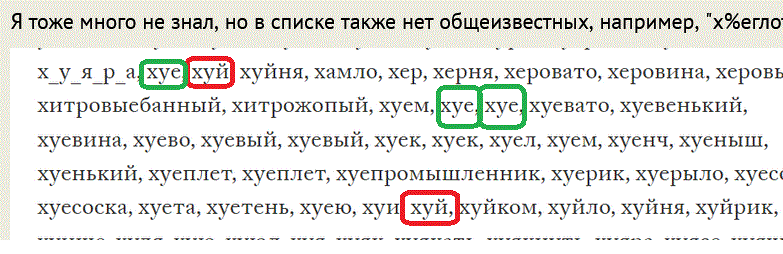 Я тоже много не знал, но в списке также нет общеизвестных, например, "х%еглот."