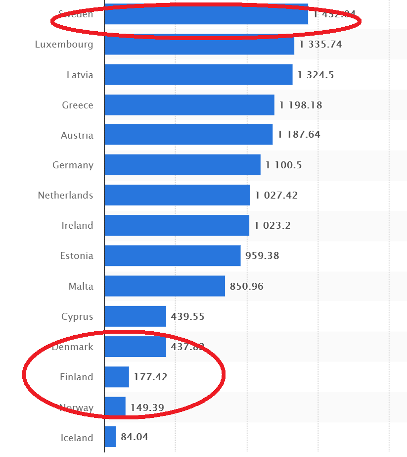 У наших дорогих истеричек, падающих в обморок от одного лишь вида маски – только Швеция в голове и засела, соседние страны с более положительной статистикой они просто в упор не замечают (там статистика для них слишком "неудобная")))...