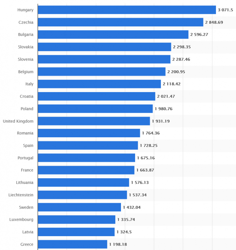 Итак смертность от короны на миллион: