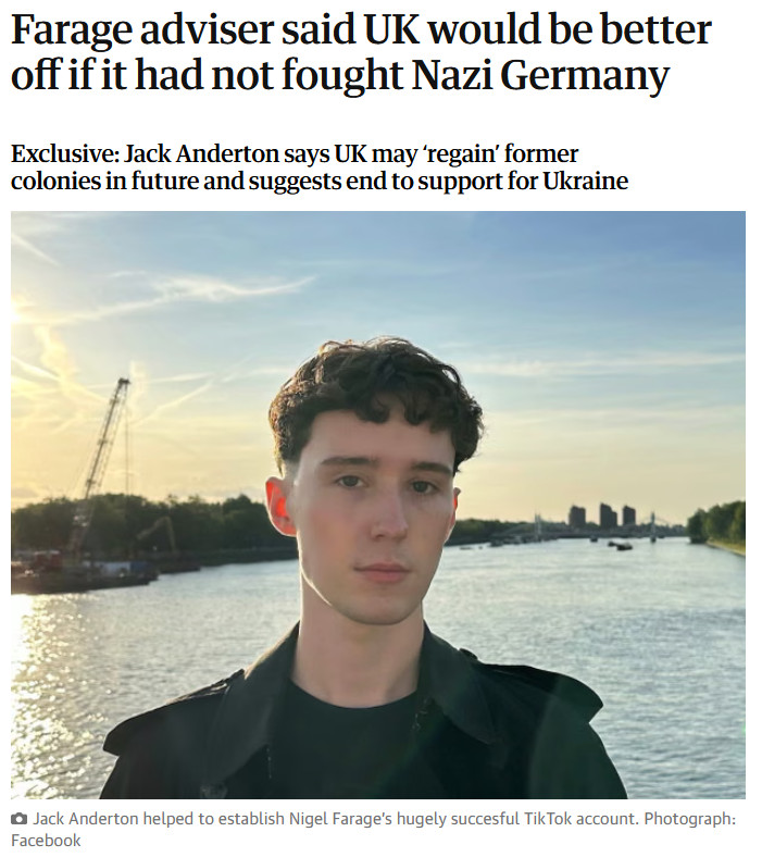 На злобу дня, советник Фаража (того, кто начал историю с Брекзитом) выдал, что Британии не стоило воевать с Гитлером -- уцелела бы Империя. Есс-сно, считает, что посылать помощь Украине тоже не следует.