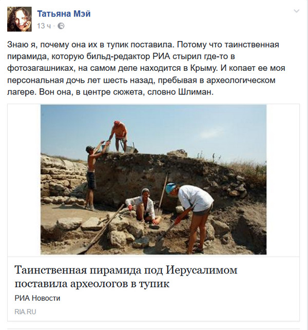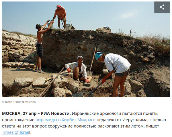 А ссылка с "Times of Israel" знаете куда ведет? В лучших традициях говножурналистики - на главную "Times of Israel". Я не поленился, нашел статью - вот она. Там и фоточка пирамиды есть - вот она. А то у "РИА-новости" фоточка пирамиды какая-то больно стремная.