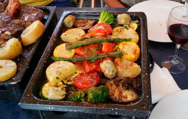 Вчера был осуществлен контрольный заход - пошли туда поужинать с друзьями. На мелочи не разменивались: сразу заказали по антрекоту из бычка (был еще вариант из вола, я это скоро попробую) и овощи на гриле. Сервируется это вот таким образом.