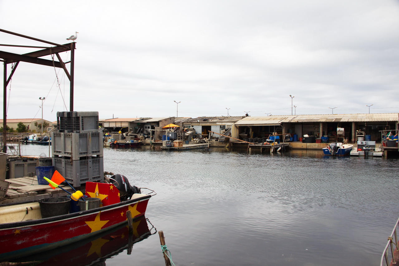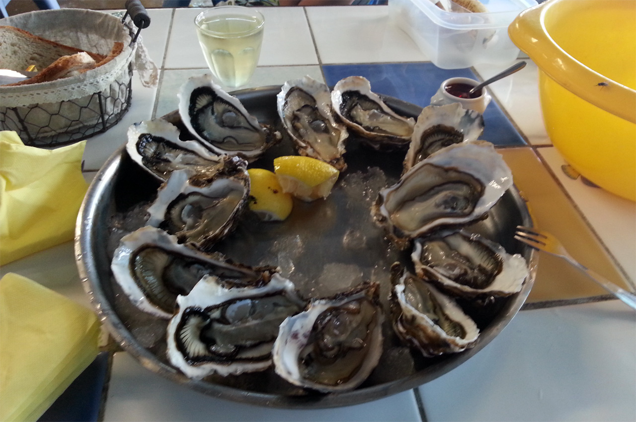 Перпиньян во время поездки в Каркасон у нас был прямо по пути, и мы решили на обратном пути после Каркасона заехать купить устриц на знаменитые устричные фермы под Перпиньяном. Ферм и всяких магазинчиков-ресторанчиков там в округе полно. Адреса их можно посмотреть на сайте ассоциации производителей. Мы ездили вот сюда (координаты 42.885278, 3.049722). Фермы смотреть мы не собирались, времени не было, задача была поесть устриц на месте и купить с собой, для чего из дома был взят кулер (пластиковый ящик с крышкой и ручкой).