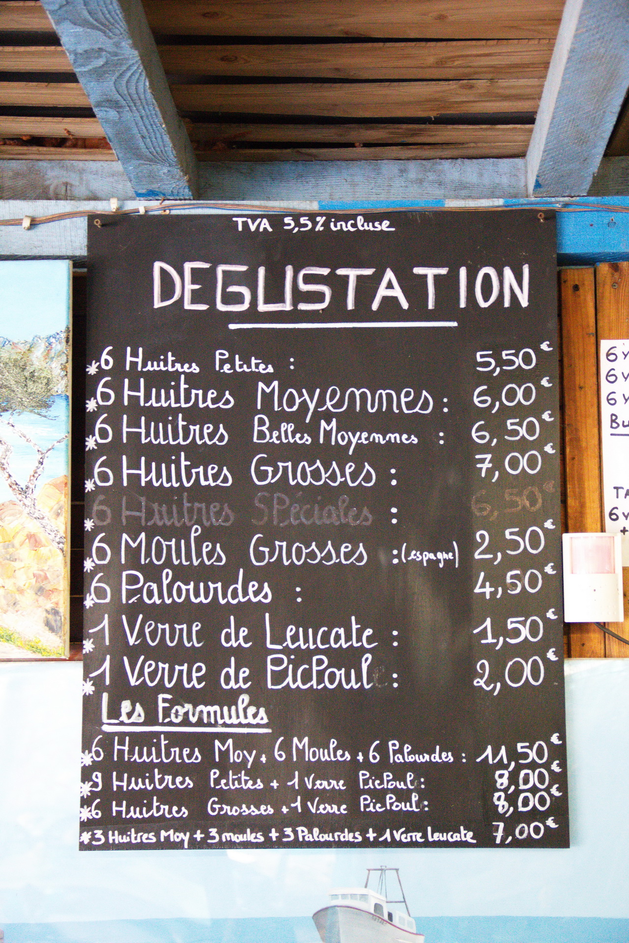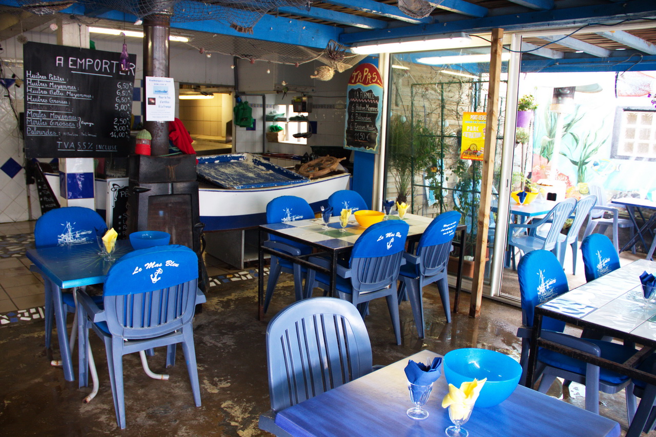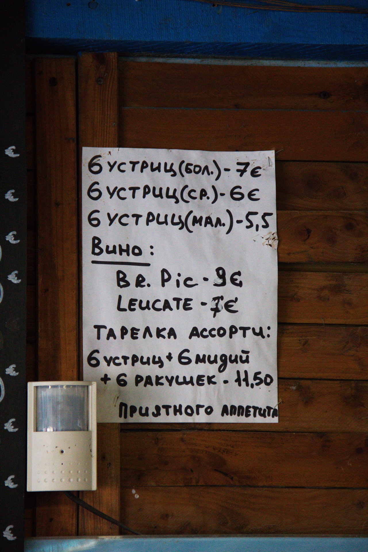 Подают в этих кафешках только устрицы, мидии и еще какие-то ракушки. Цены очень невысокие - самые дорогие (гигантские) устрицы стоят 7 евро за шесть штук. А так обычная цена - евро за штуку. Вот прайс.