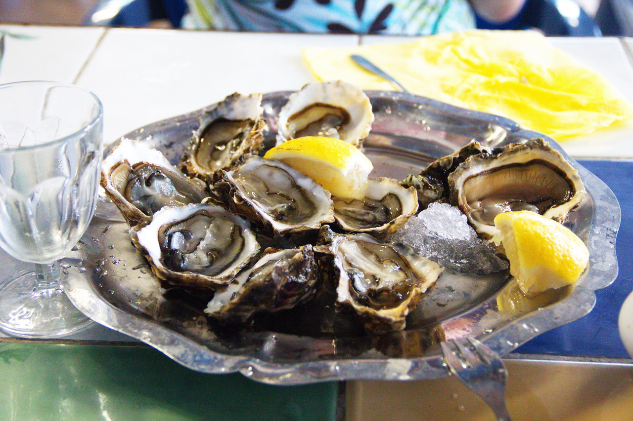 Заказали дюжину устриц и белого вина. Устрицы оказались обалденные: дурачки, которые не едят устриц в месяцы, в названии которых не содержится буквы "р", могут вешаться.