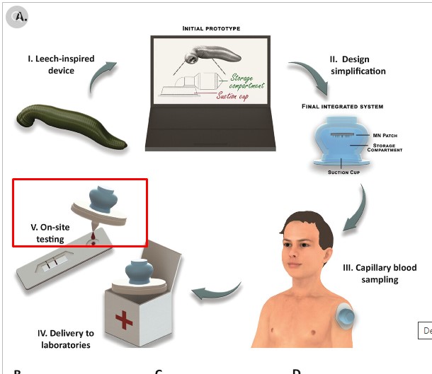 Команда из Швейцарской высшей технической школы Цюриха представила диагностическое устройство, заменяющее шприц при заборе крови для проведения анализа. Оно работает по принципу пиявки и менее инвазивно по сравнению с игольной системой. Прибор представляет собой миниатюрную присоску, внутри которой находится большое количество микроигл, аккуратно прокалывающих кожу при нажатии.