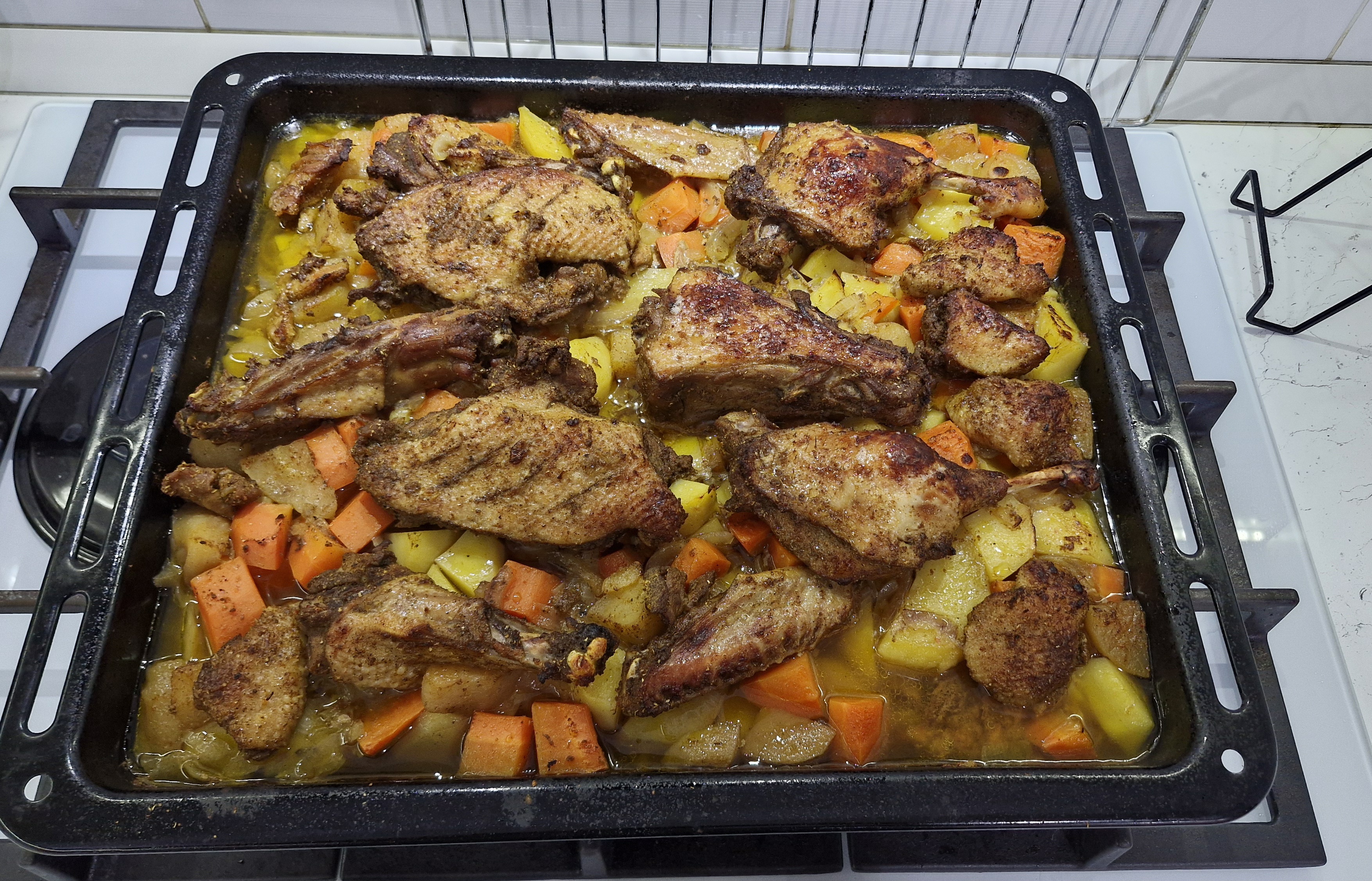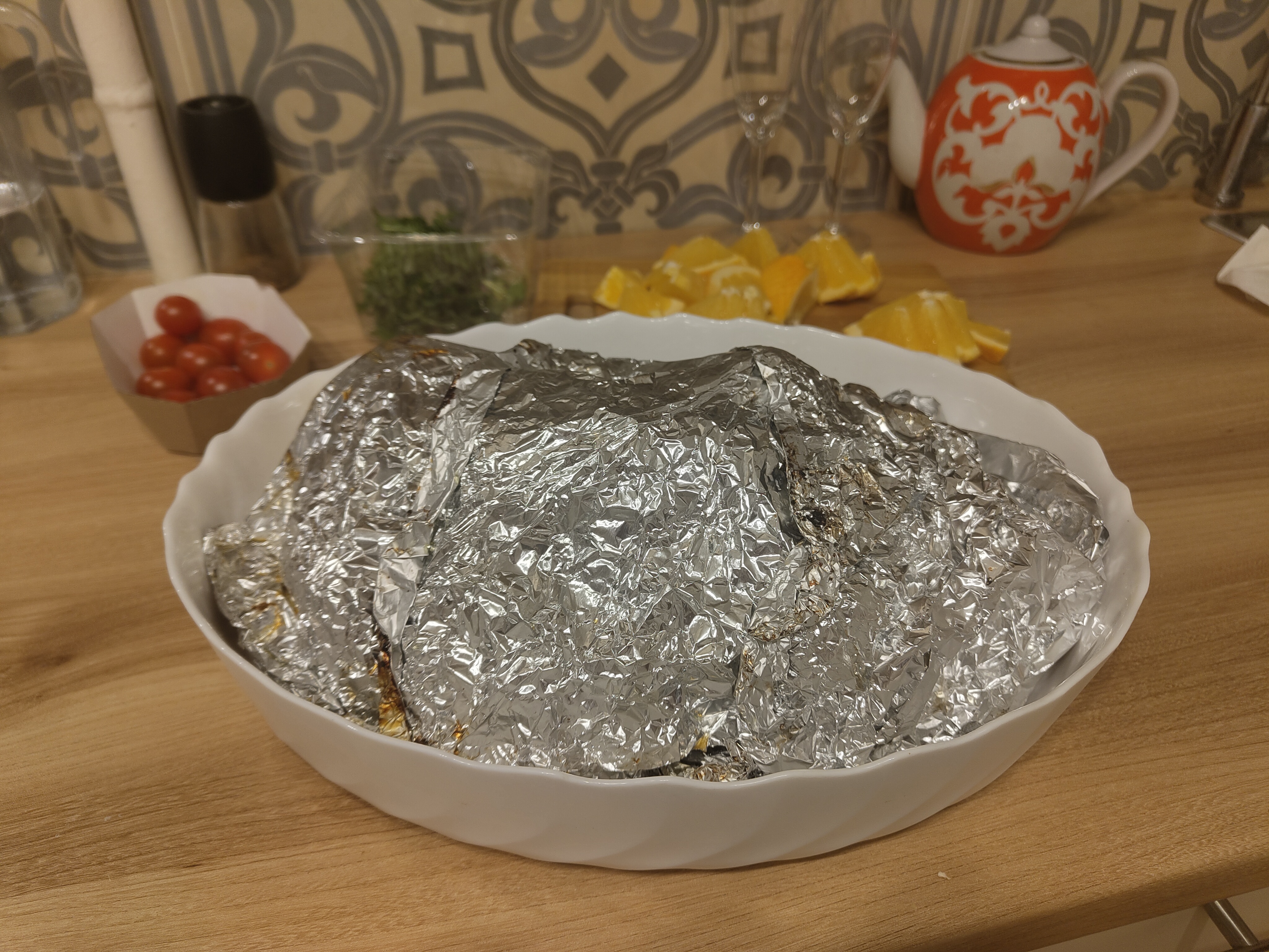 У нас, как ни странно для НГ, индейка. Стеснительная, накрылась перед выходом.