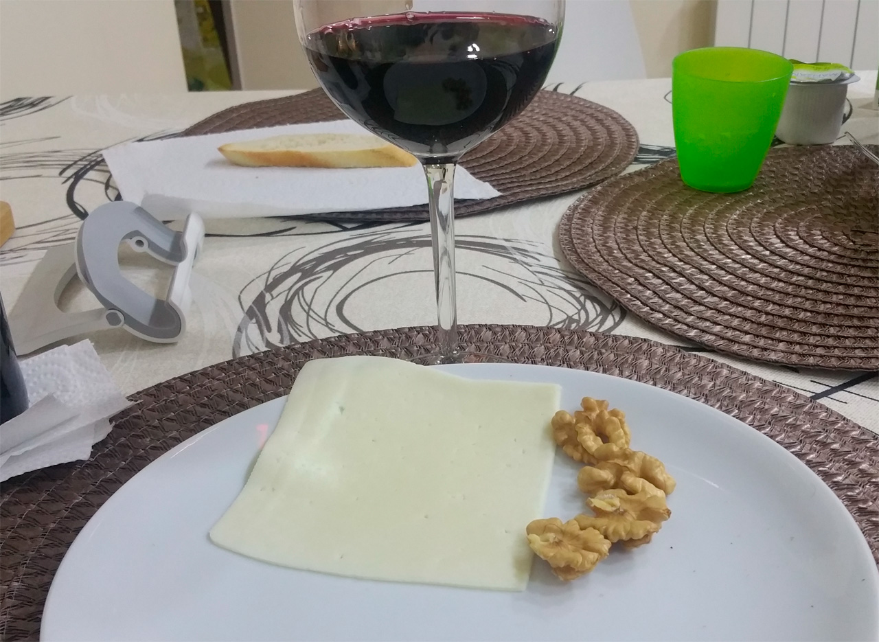 Upd: Наврал, конечно, прибеднялся. Реально сыра было три кусочка и грецких орехов - четыре, а не два. Простите.