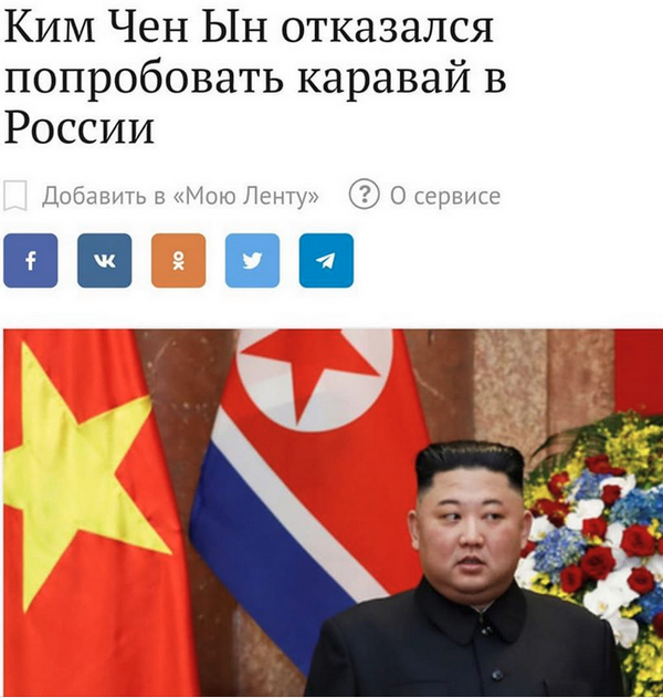 Вопрос такой: на черта он вообще приехал? О чем они с Путиным будут разговаривать и договариваться? Там же точек соприкосновения нет никаких. Так, чисто дружба-жвачка? Договорятся о проведении "Недели культуры Северной Кореи" в России и о концерте Ольги Бузовой в Пхеньяне?