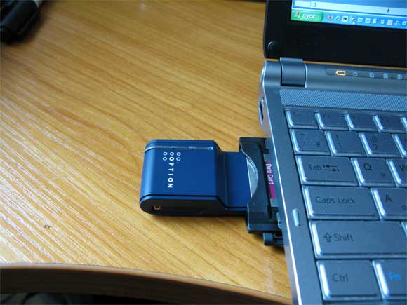 Она именно для таких задач - выход с ноутбука в Сеть через GPRS. В устройство вставляется SIM-карта, далее все это вставляется в PCMCIA-слот ноутбука. Софт у него зашит внутри (это очень удобно) - при первом подключении запускается инсталлятор.