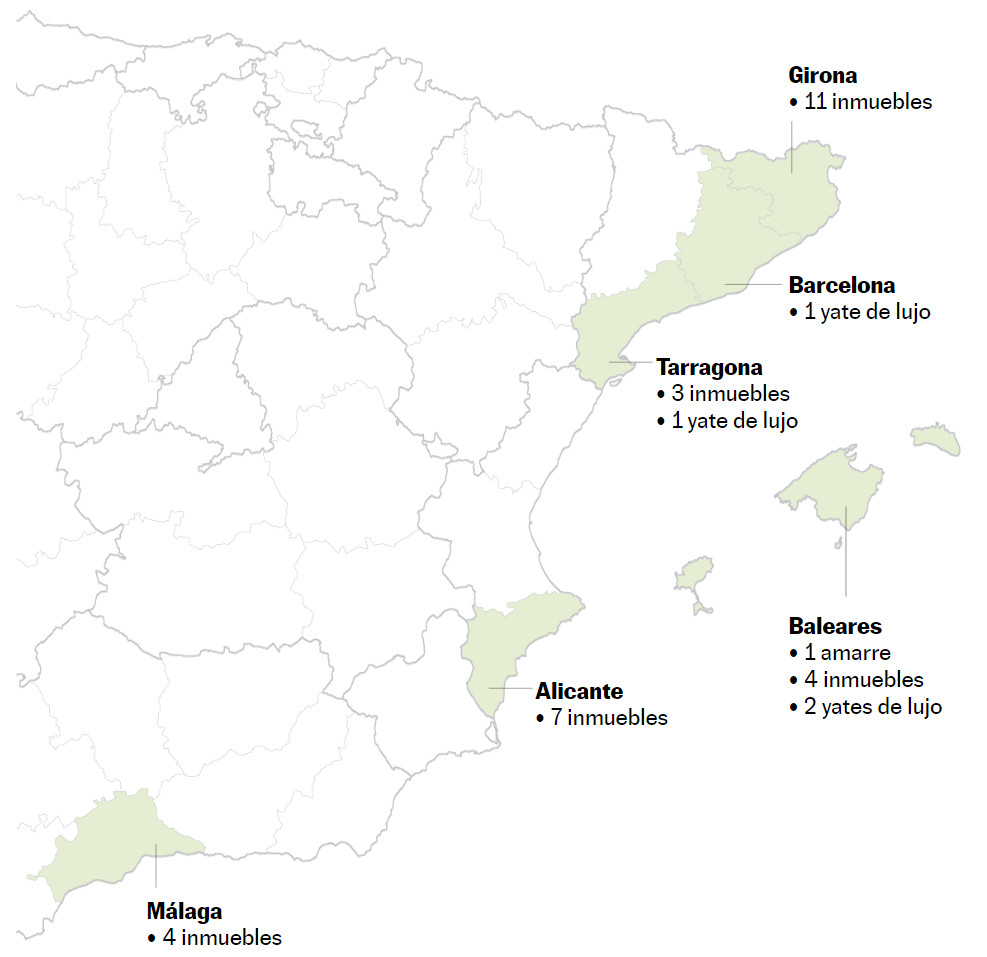 Четыре яхты, лодочный причал и 29 объектов недвижимости. 34 актива олигархов, близких к президенту России Владимиру Путину, включенных в список подпадающих под санкции Евросоюза, сосредоточены вдоль всего побережья Средиземного моря, особенно в Каталонии, согласно данным расследования, к которому EL PAÍS имеет доступ. В этом сообществе было расположено в общей сложности 14 объектов недвижимости, из которых 11 находятся в провинции Жирона, а остальные три - в Таррагоне. Кроме того, в этой последней провинции 4 апреля судья постановил конфисковать яхту стоимостью более 100 миллионов евро, а двумя неделями ранее в порту Барселоны была задержана вторая роскошная яхта.