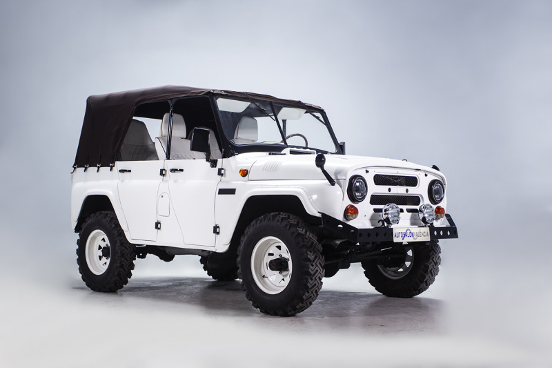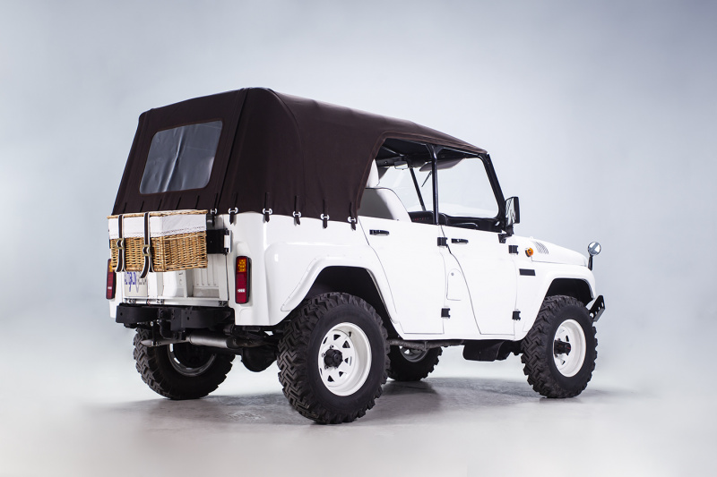 Движок там самый обычный уазовский, 75 л.с. Два варианта мягкого верха. Отличная проходимость по говнам (интересно, во что при этом превратится белый салон), легко ремонтируется с помощью кувалды.