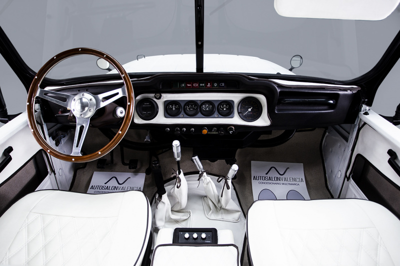 Салон тоже круто тюнинговали, рычаги управления обернули в белую-белую кожу, туда поставили акустику Marshall и сзади присобачили корзину для пикника.
