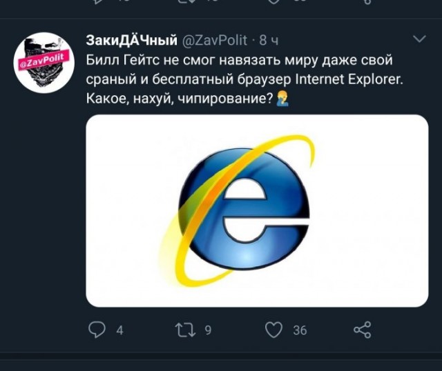 А в случае с "чипизацией Гейтса" получается экспорт из России в подарок остальному миру? Или этот хайп родился все же не в России?