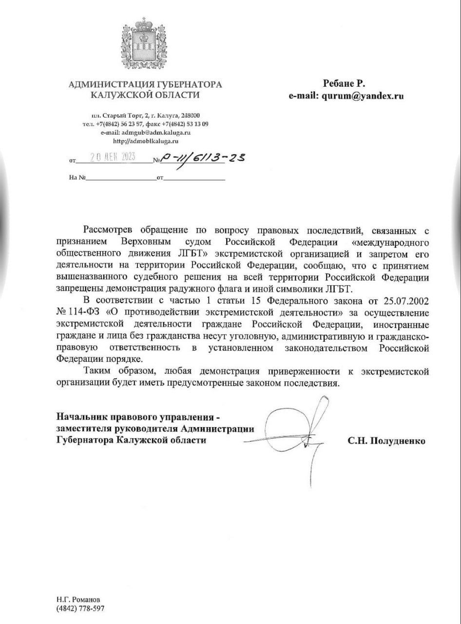 Свершилось! Власти Калужской области запретили радужный флаг "на всей территории Российской Федерации". Текст постановления опубликовало издание "Новые известия".