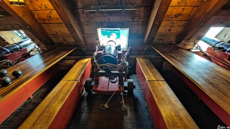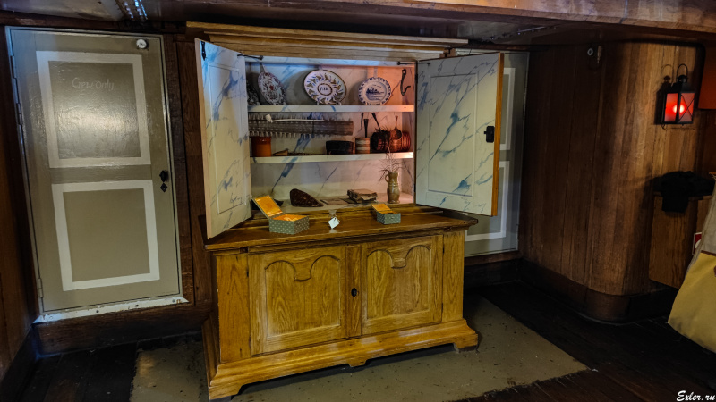 Экипаж оригинального корабля насчитывал 130 человек, экипаж реплики - 80 человек.