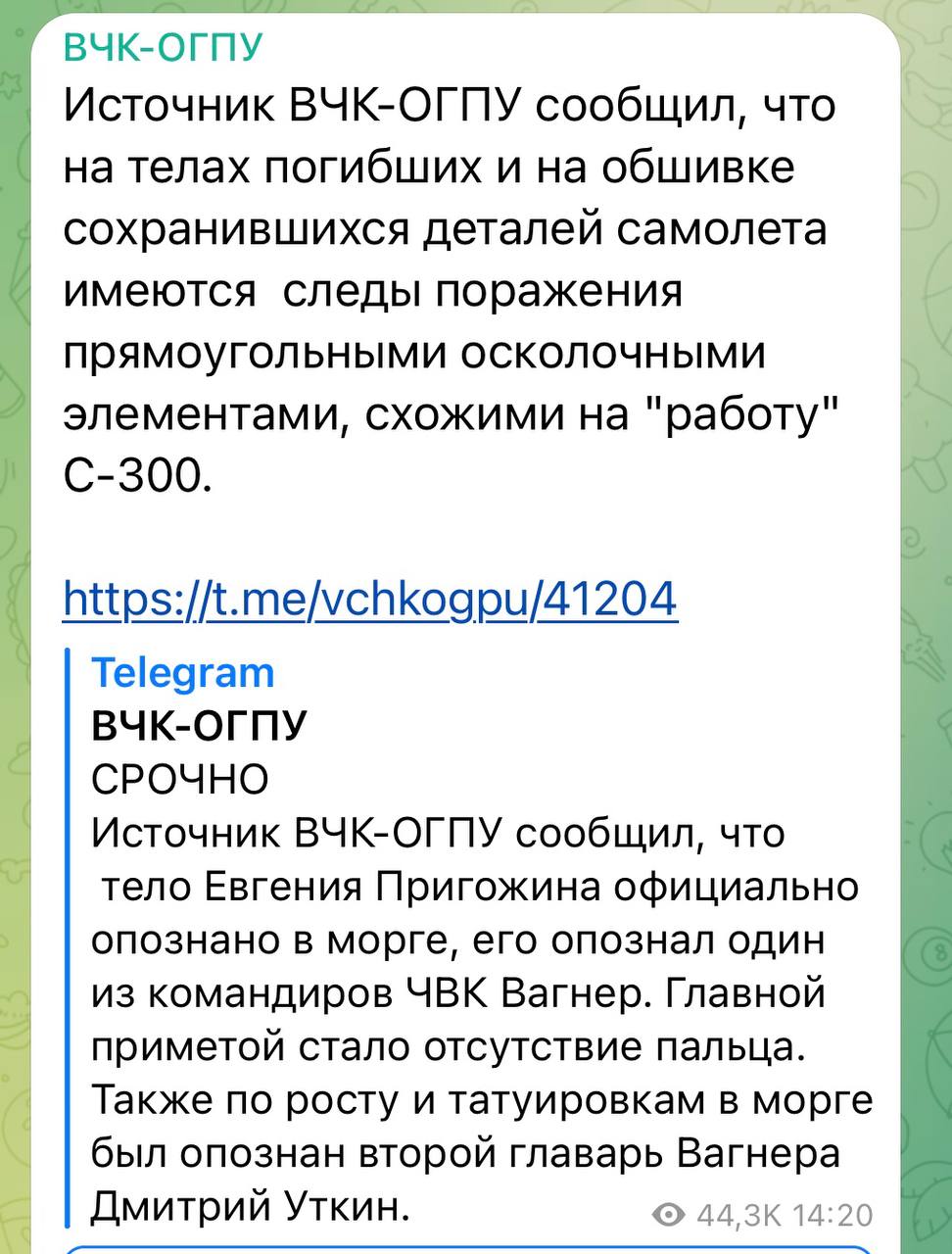 "Медуза» выяснила, что о крушении самолета Пригожина думают сами наемники из ЧВК Вагнера".