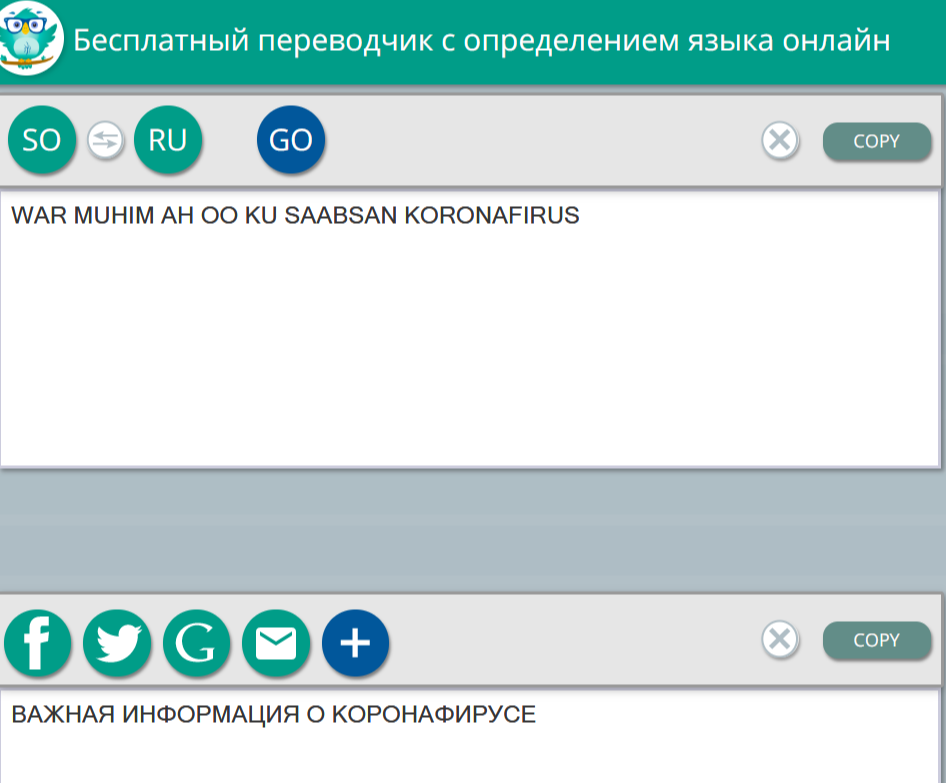 самая зловещая строчка: "WAR MUHIM AH OO KU SAABSAN KORONAFIRUS"