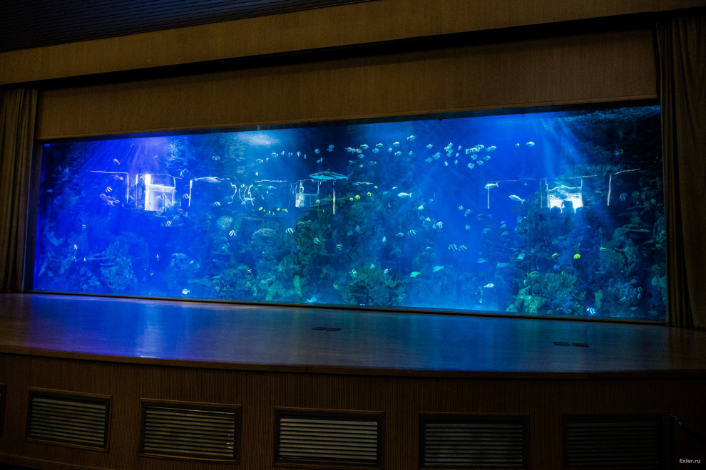 Театр-аквариум. Похоже на кинотеатр, только вместо экрана - аквариум. Медитативное место.