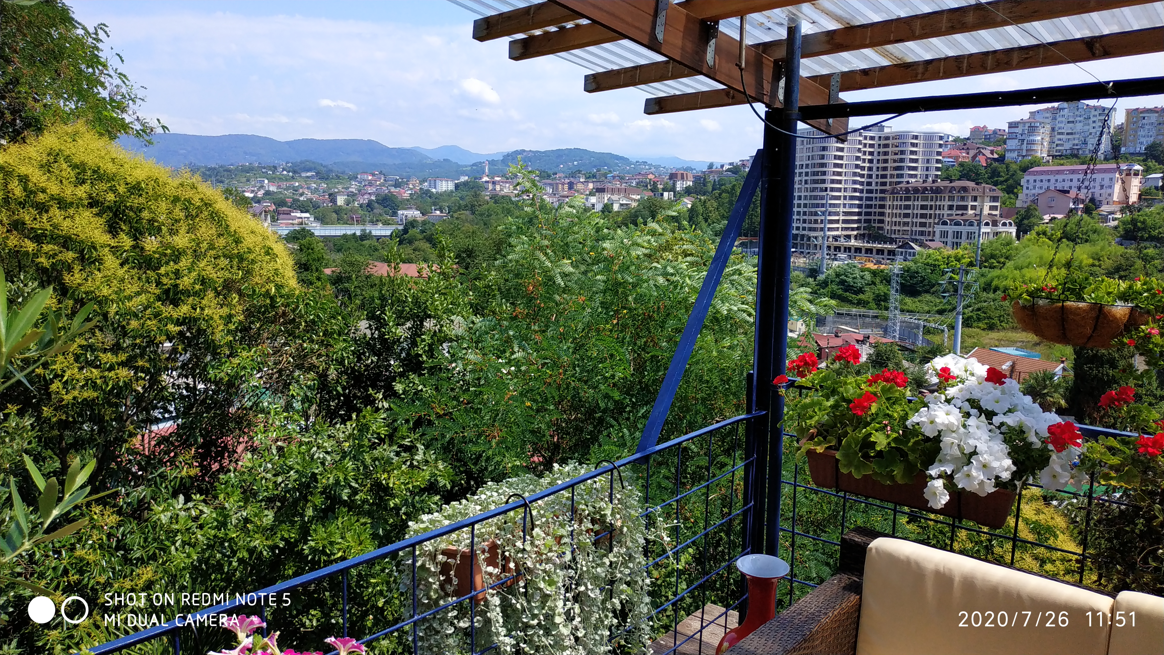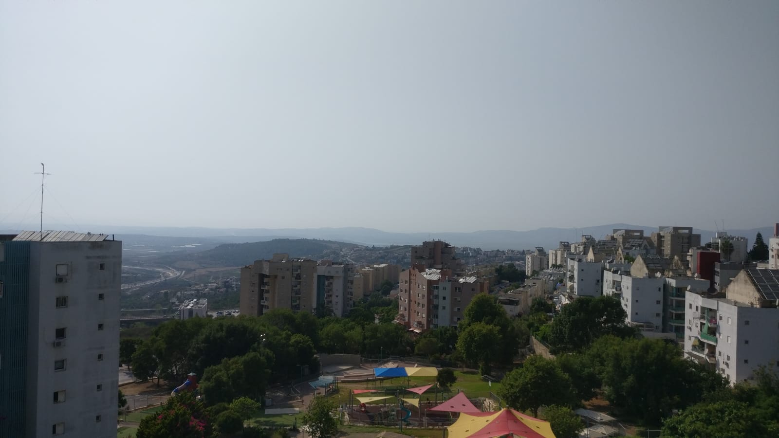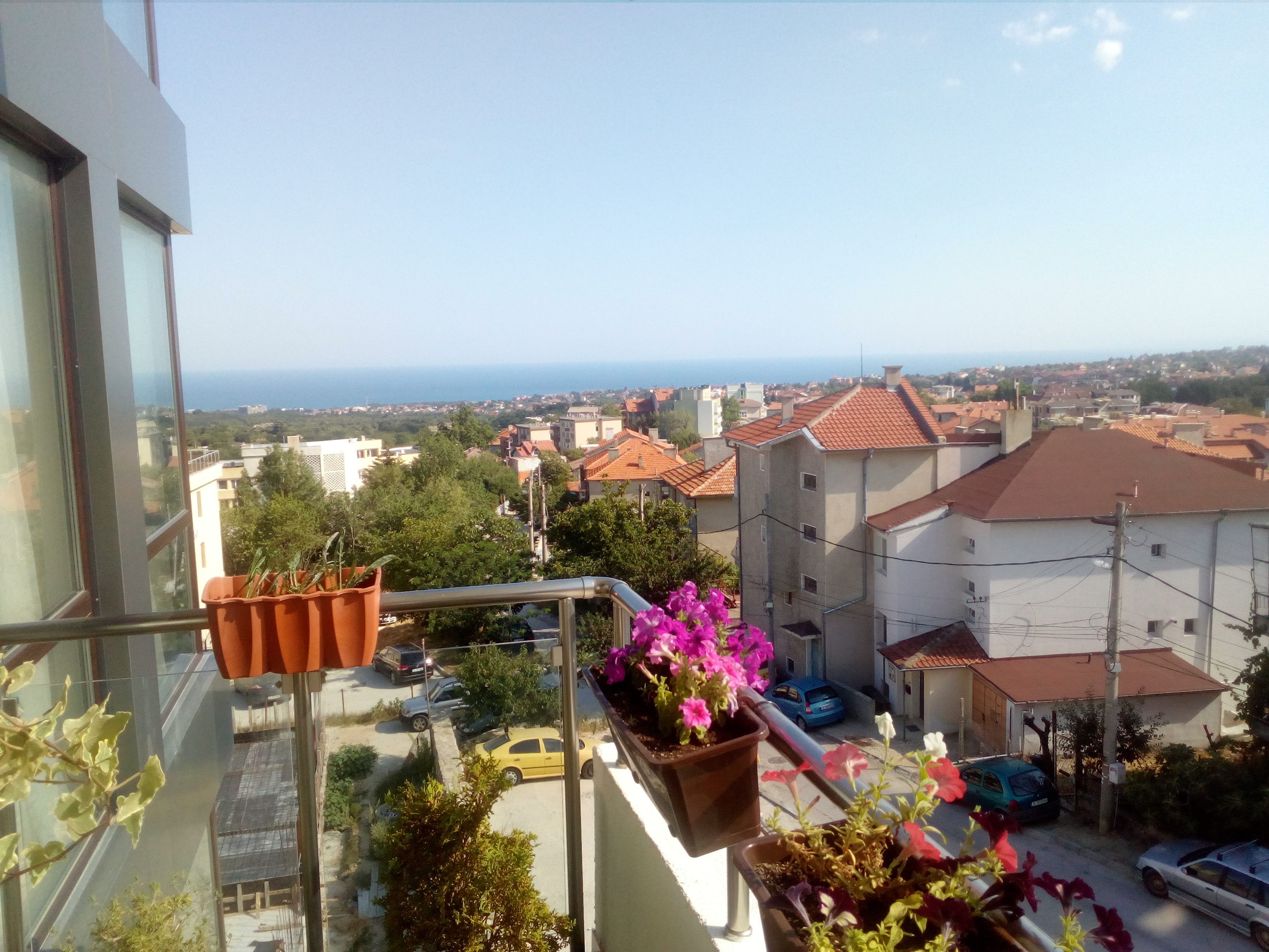 Почти из окна, точнее внизу выход. Раньше было зелёным с рощей до пожаров конца 2016