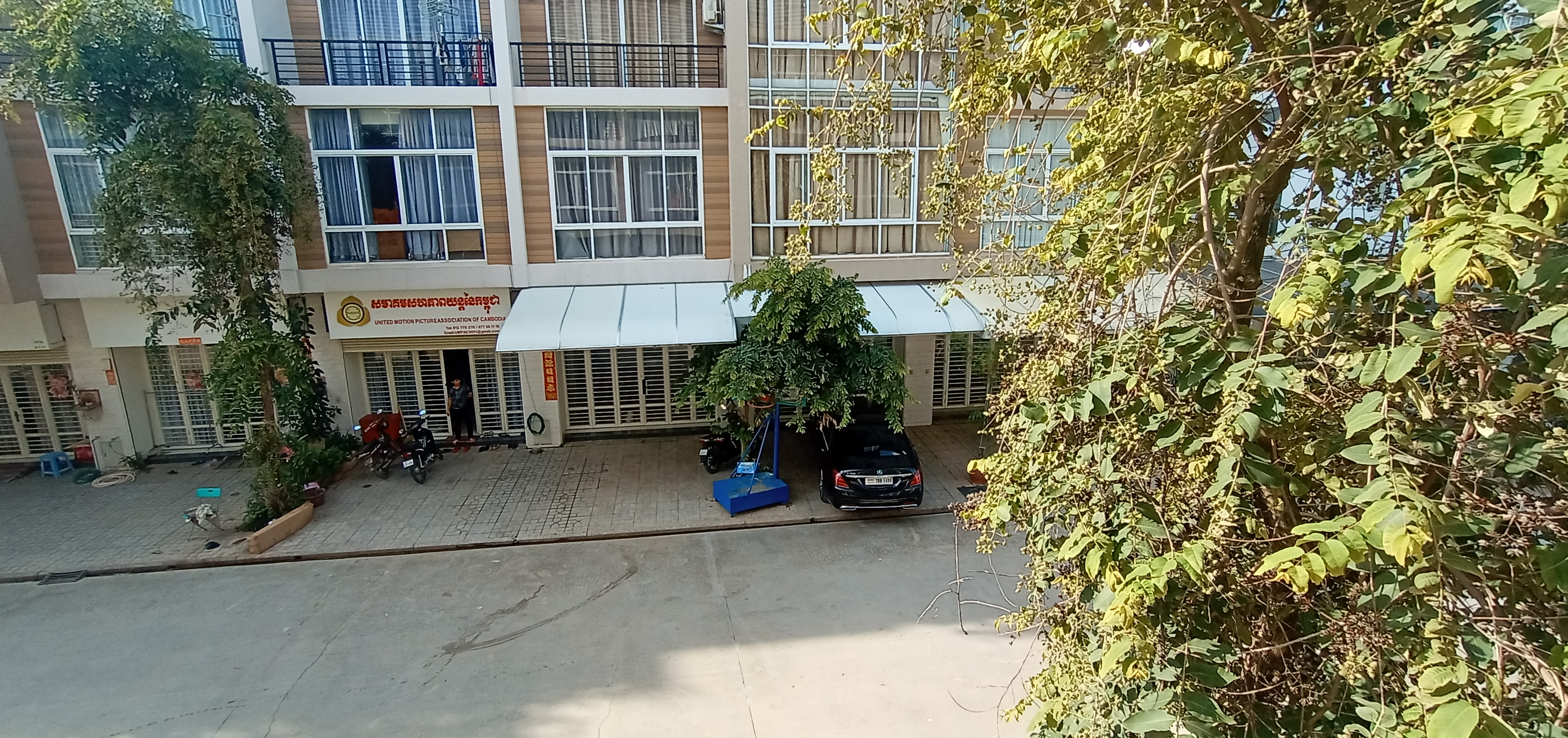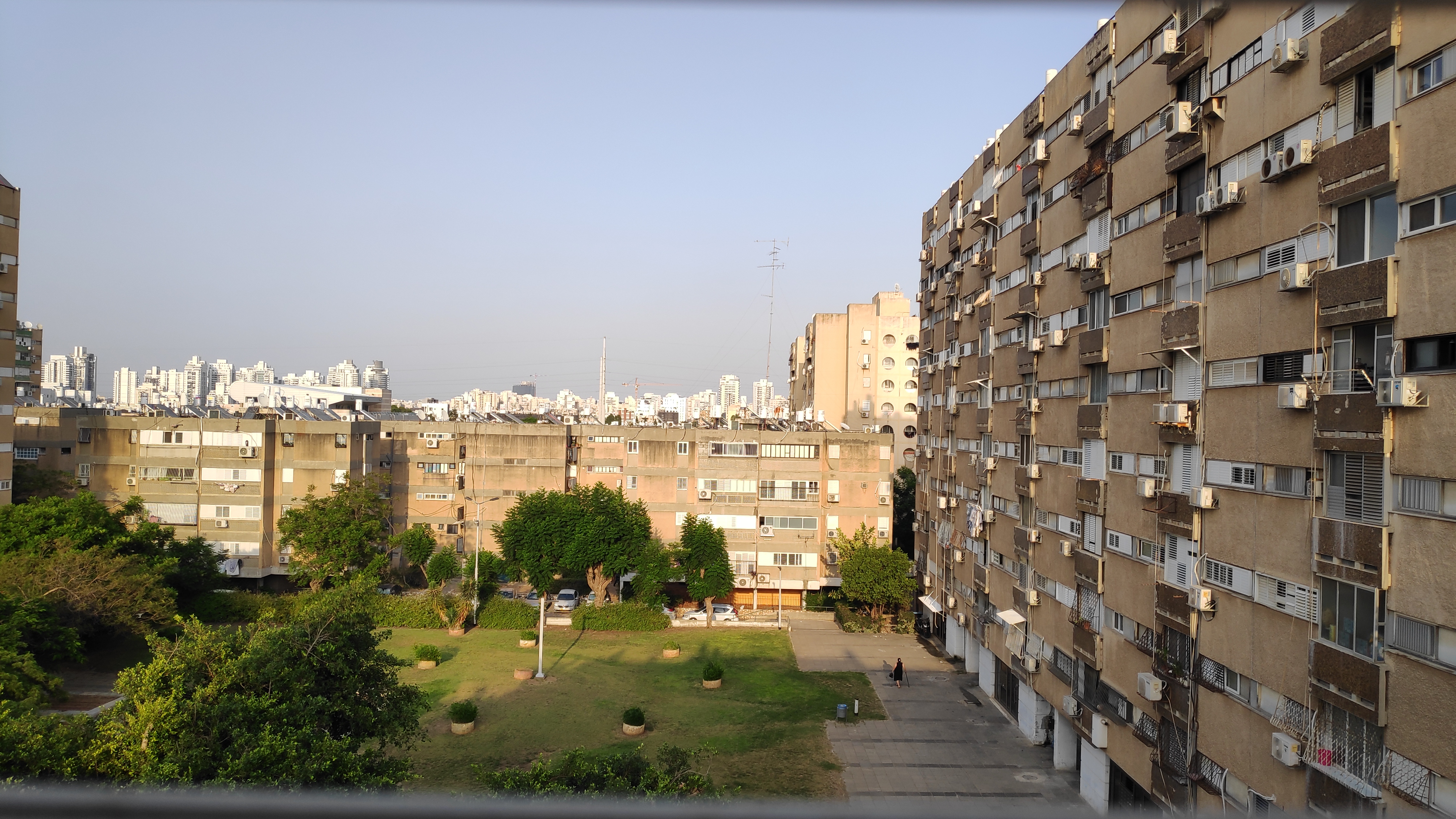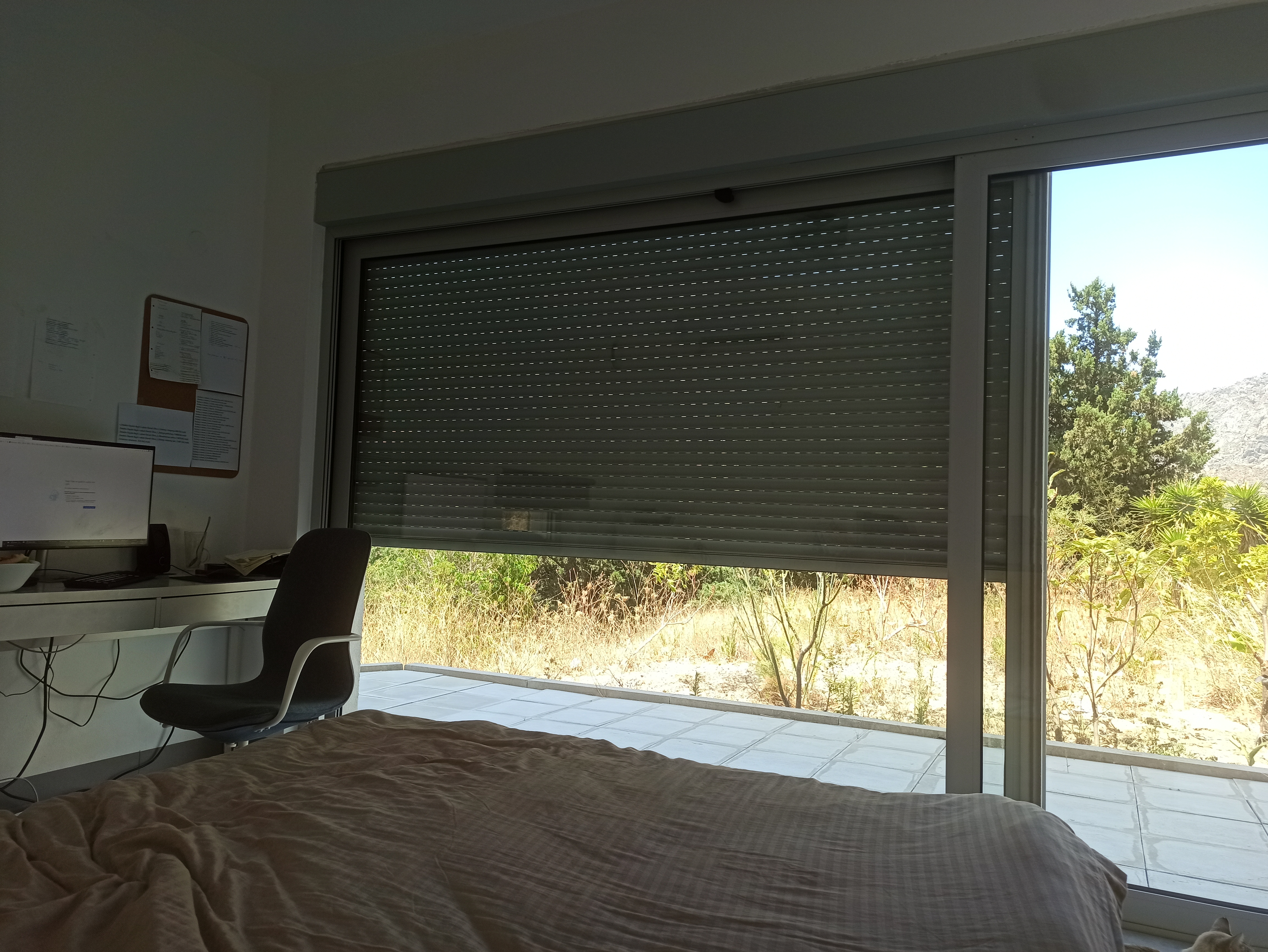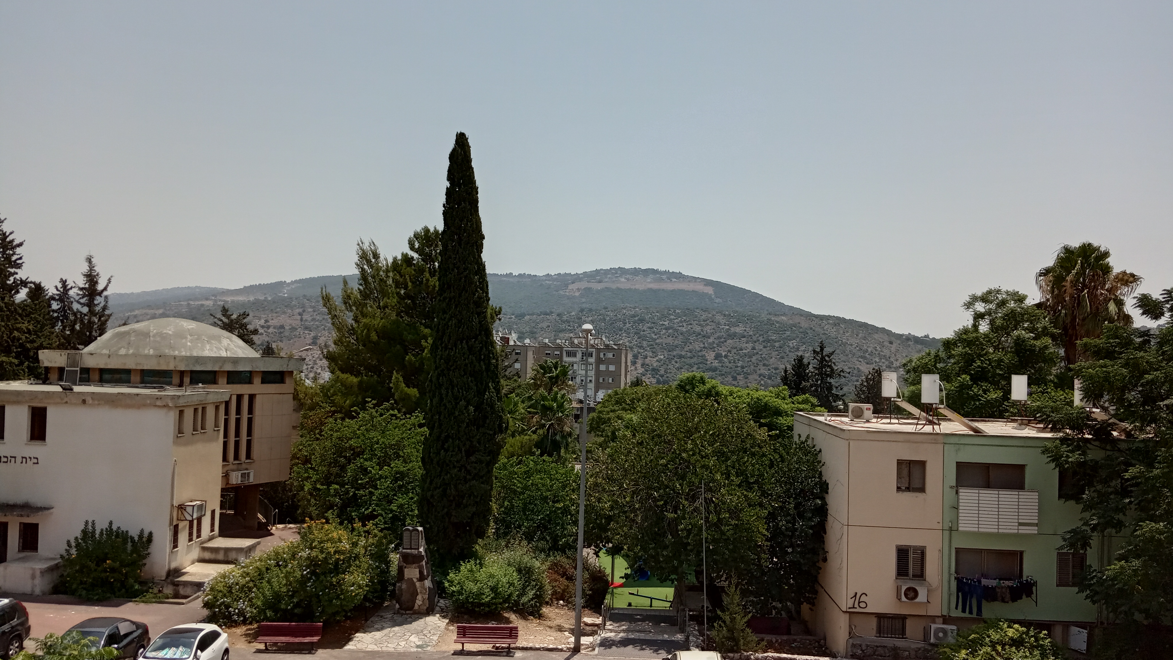 Почти из окна, точнее внизу выход. Раньше было зелёным с рощей до пожаров конца 2016