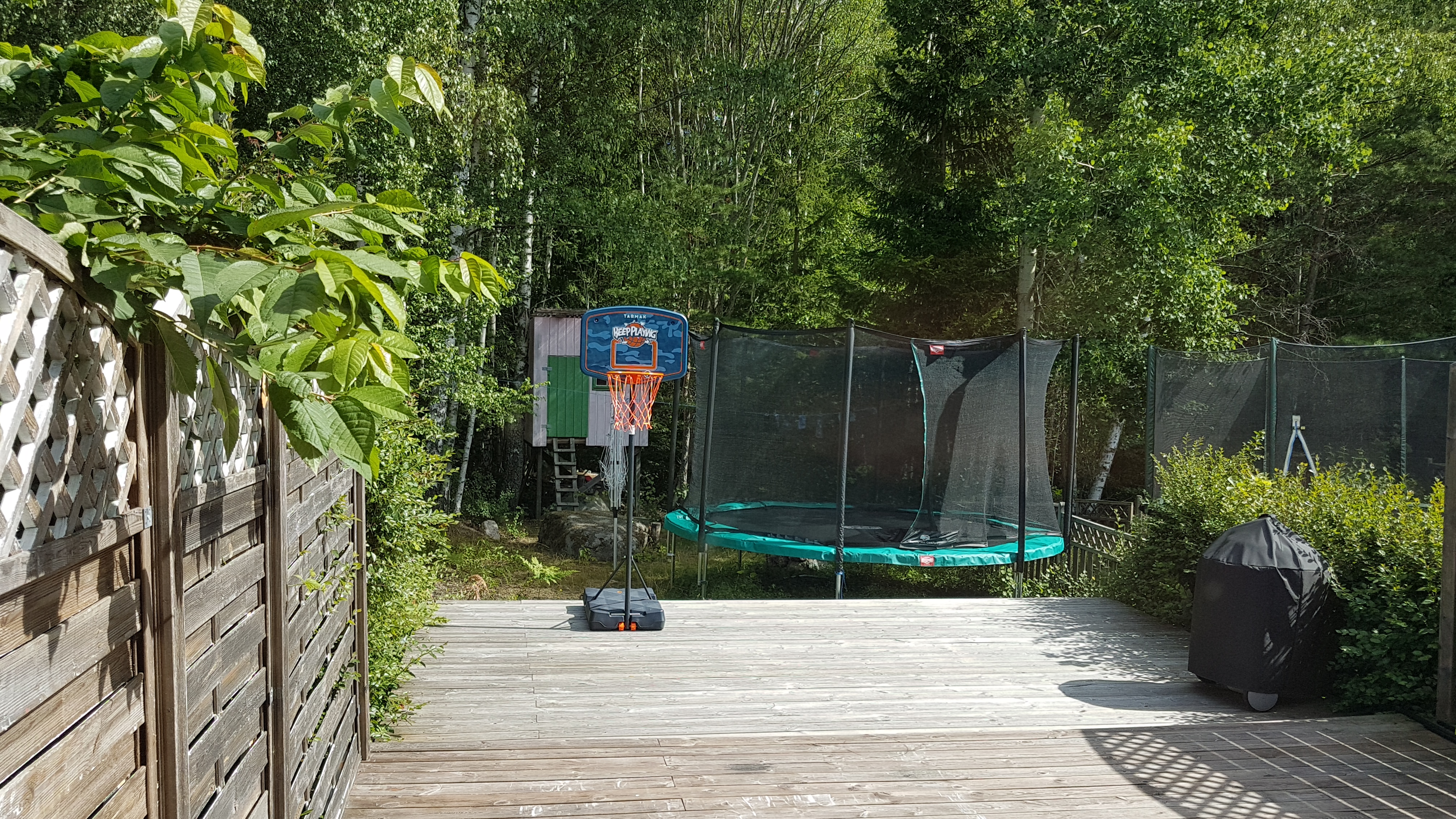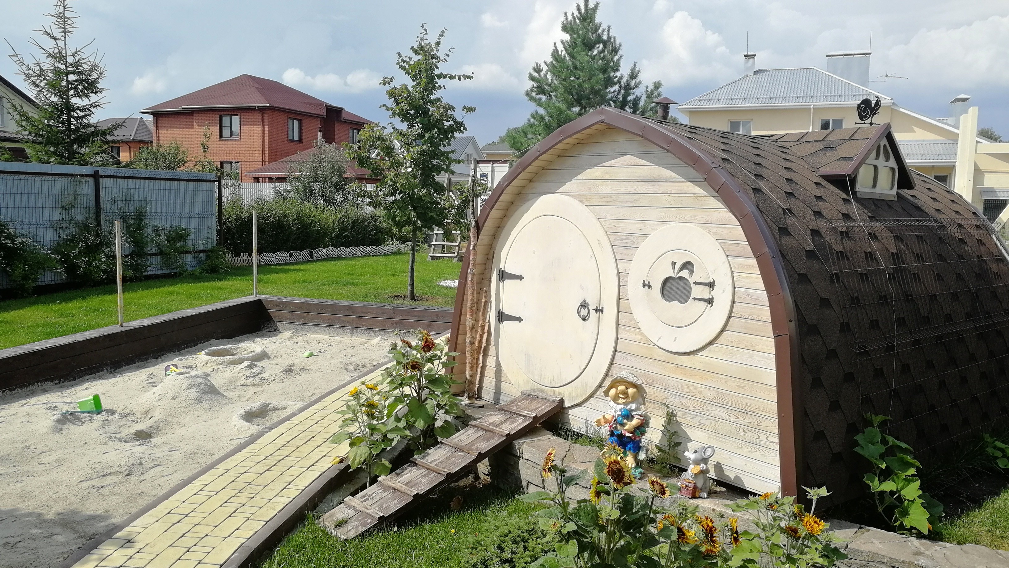 У нас примерно также, только качели у соседей, а у нас кольцо баскетбольное