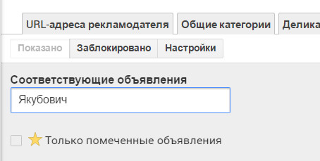 И, кстати, подобные текстовые объявления очень легко ищутся с помощью фильтра (ссылка справа сверху). А по "Якубовичу" и "Газманову" отыскал их все в две секунду и заблокировал.