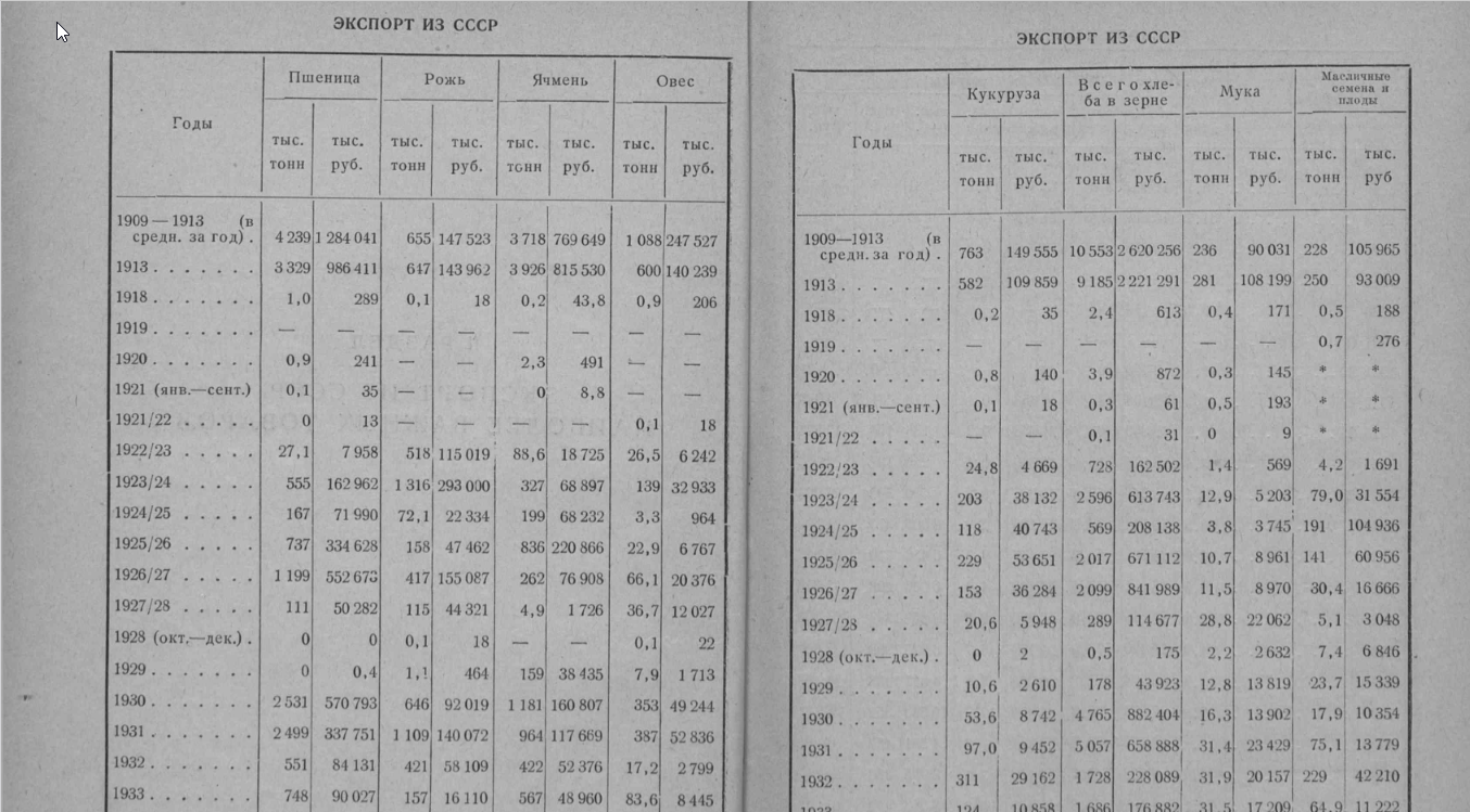 На деле же доходы от продажи зерна в первую пятилетку были меньше, чем доходы от продажи в период НЭПа. В этом может убедиться каждый желающий, открыв любой статистический справочник по внешней торговле СССР издания 30-х годов. Например здесь - istmat.info