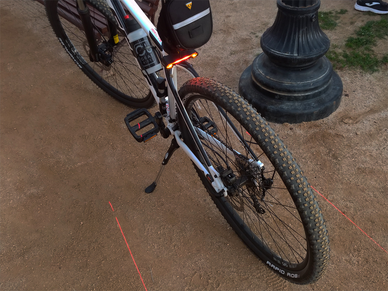 Из недавних полезных приобретений - задний фонарь Meilan Smart, который мне здесь посоветовали. Штука актуальная: я иногда катаюсь на закате и возвращаюсь уже в сумерках или в темноте, при этом километра два перед домом нужно ехать по улицам с автомобильным движением.