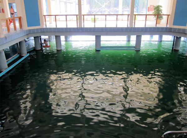 В центральной, закрытой части купален, располагаются четыре бассейна (точнее, отделения озера) - два погорячее, два похолоднее.