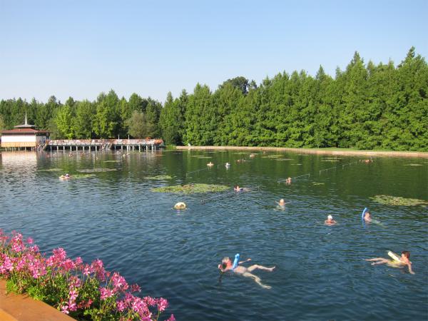 На озере построены большие и очень комфортные купальни, которые я посетил с деловым визитом и развлекался там несколько часов. Остался в восторге - там и внутри все очень комфортно и джакузийно, а уж само озеро - просто сказка.