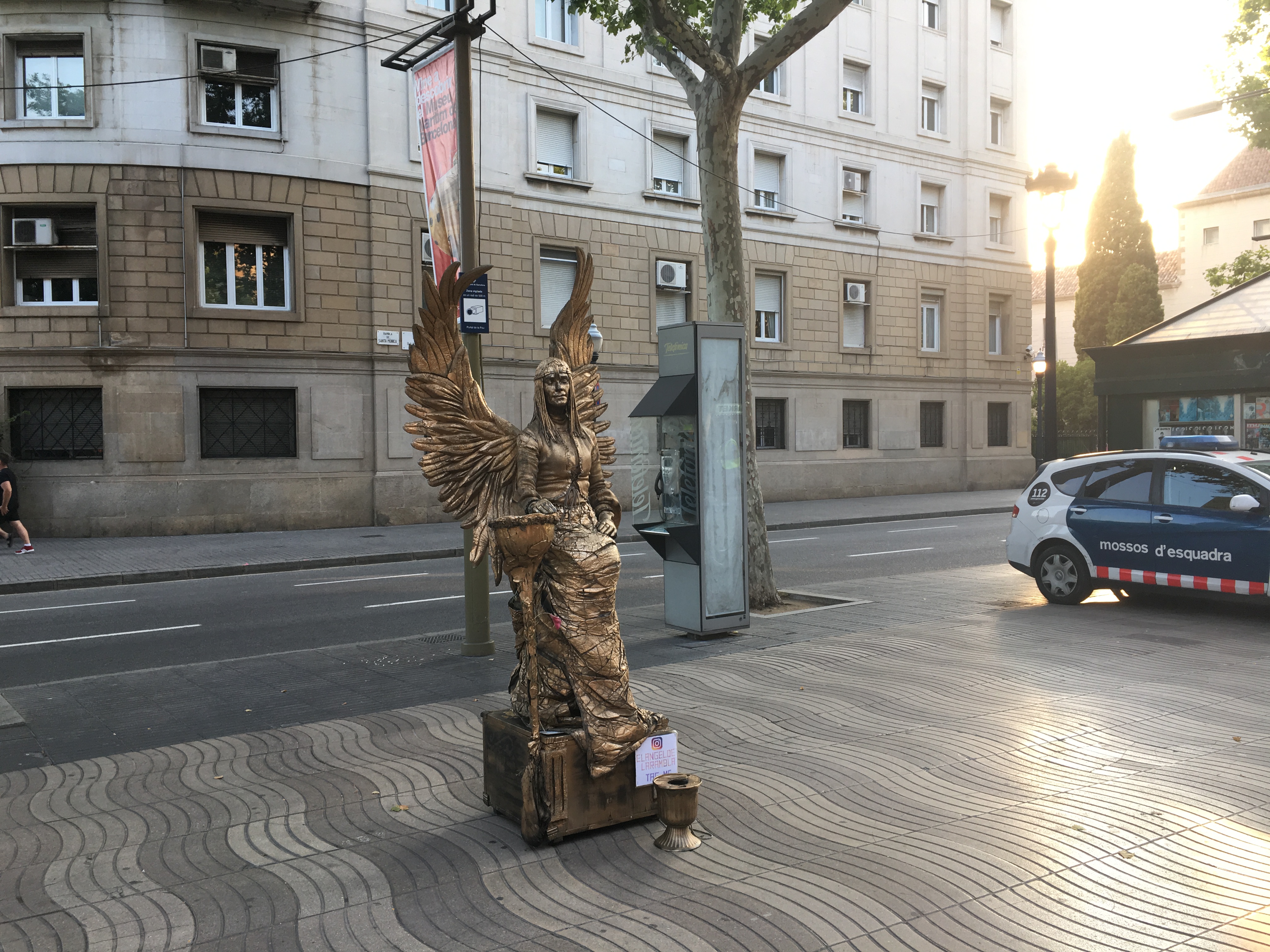 В Москве появилась эрзац-рамбла - Никольская улица. Живые скульптуры тоже есть в товарных количествах, только, в отличии от испанских, они не стоят на месте, а активно бегают по улице и пристают к туристам, выклянчивая денежку за право сделать фото с ожившей статуей. В тренде целиком белые ангелы разного пола и комплекции, и пираты, окрашенные бронзой.