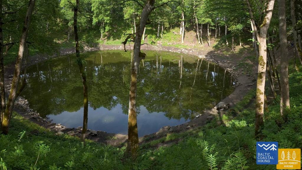 Kaali Lake (Estonian: Kaali järv) is on the bottom of this crater. Eight smaller craters are also associated with this bombardment. Their diameters range from 12 to 40 m (39 to 131 ft) and their respective depths vary from one to four metres (3.3 to 13.1 ft). They are all within one kilometre (0.62 mi) of the main crater."